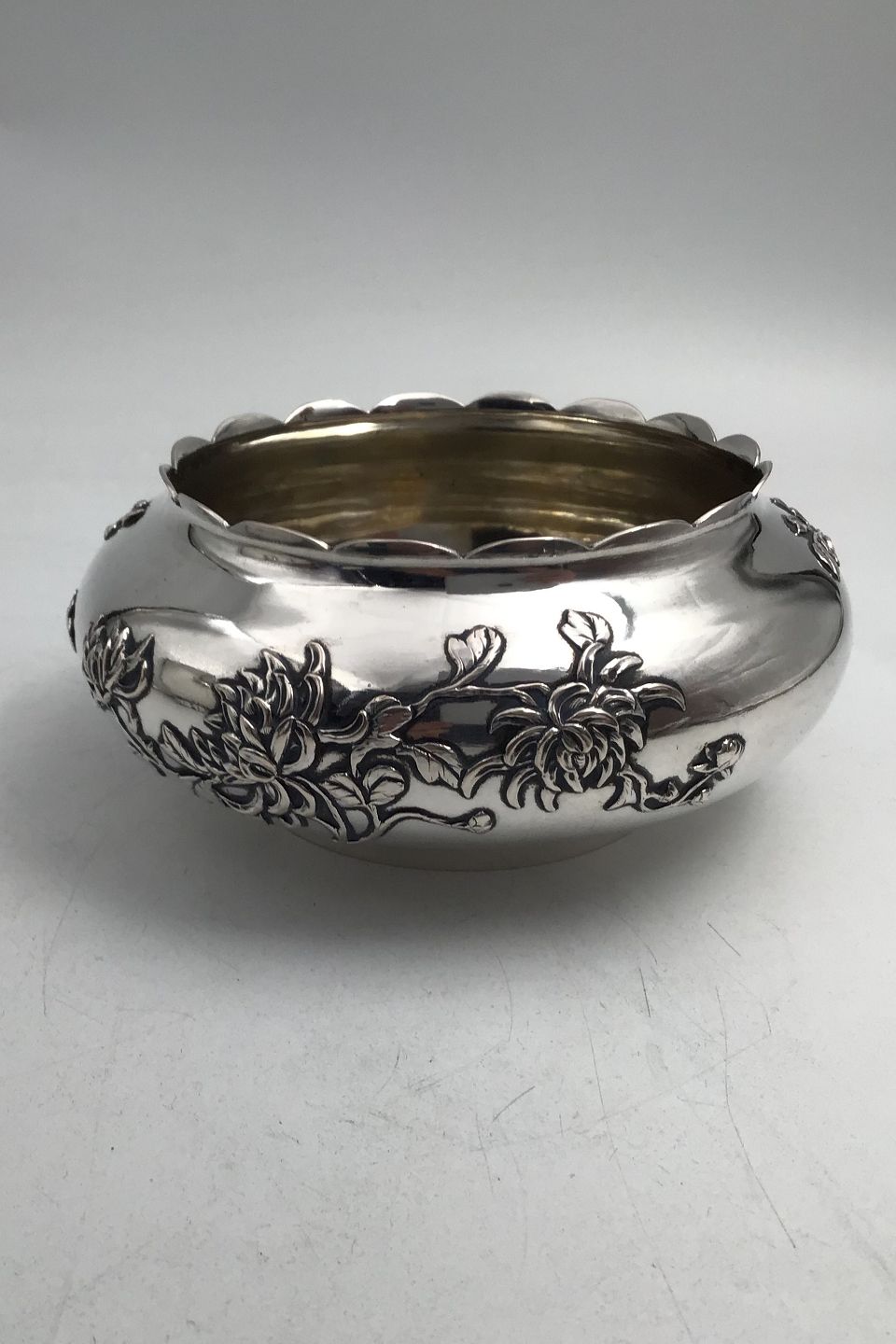 Antik Kinesisk Sterling Sølv Skål (Luen Wo, Shanghai) Krysantemum blomst udsmykning