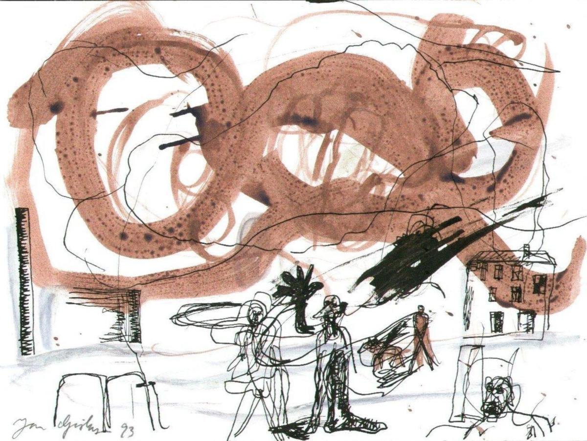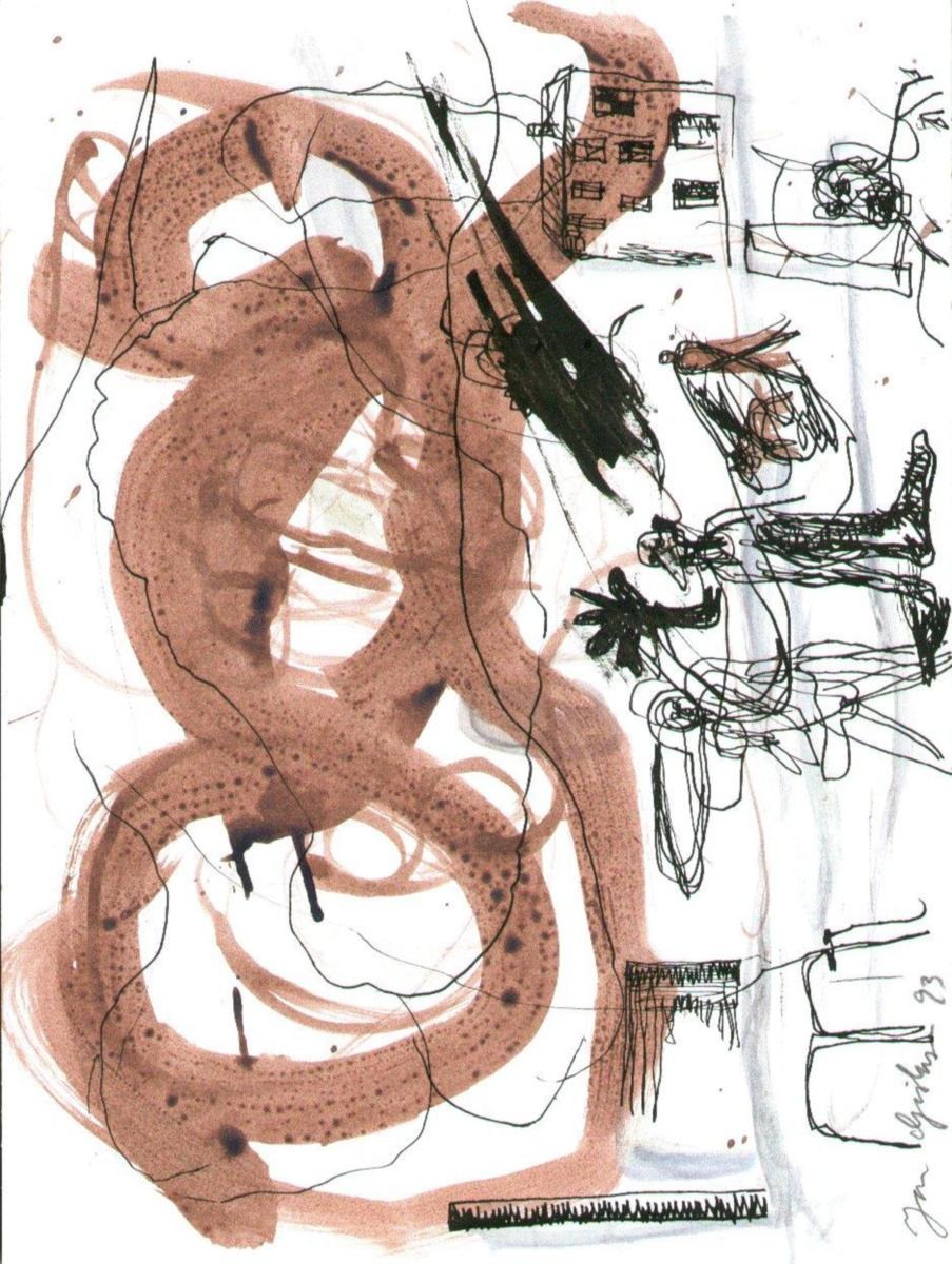 Gislason, Jon (1955-): Komposition. Akvarel/tusch på papir. Sign.: Jon Gislason 98. 31,5 x 24 cm.