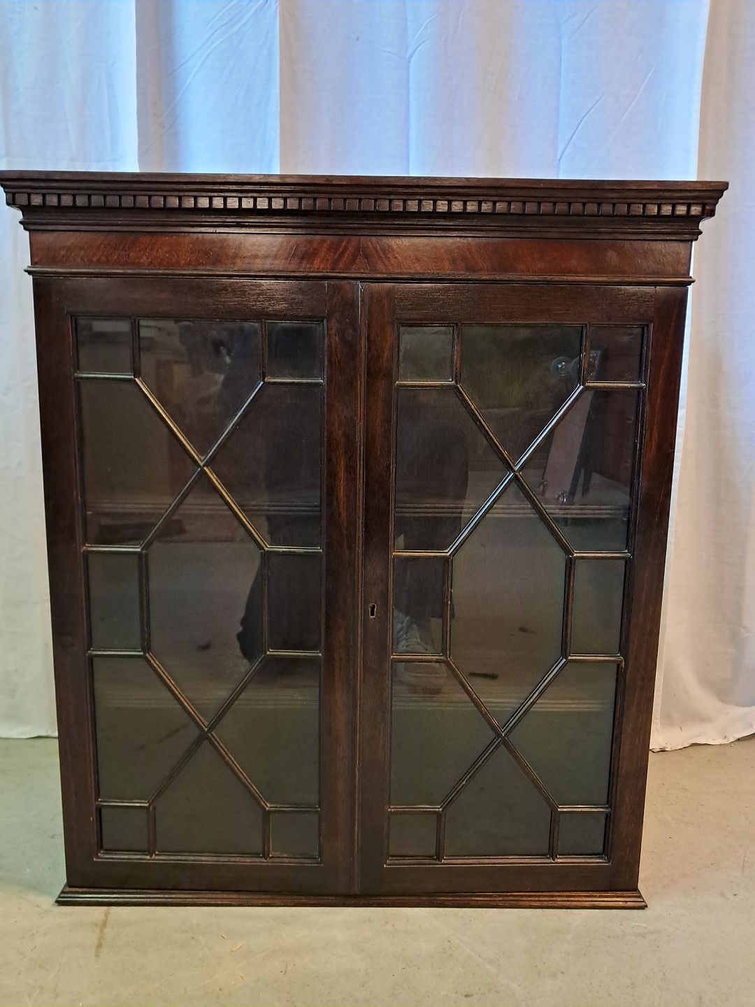 Vitrineskab i fineret mahogni, fra 1980erne,