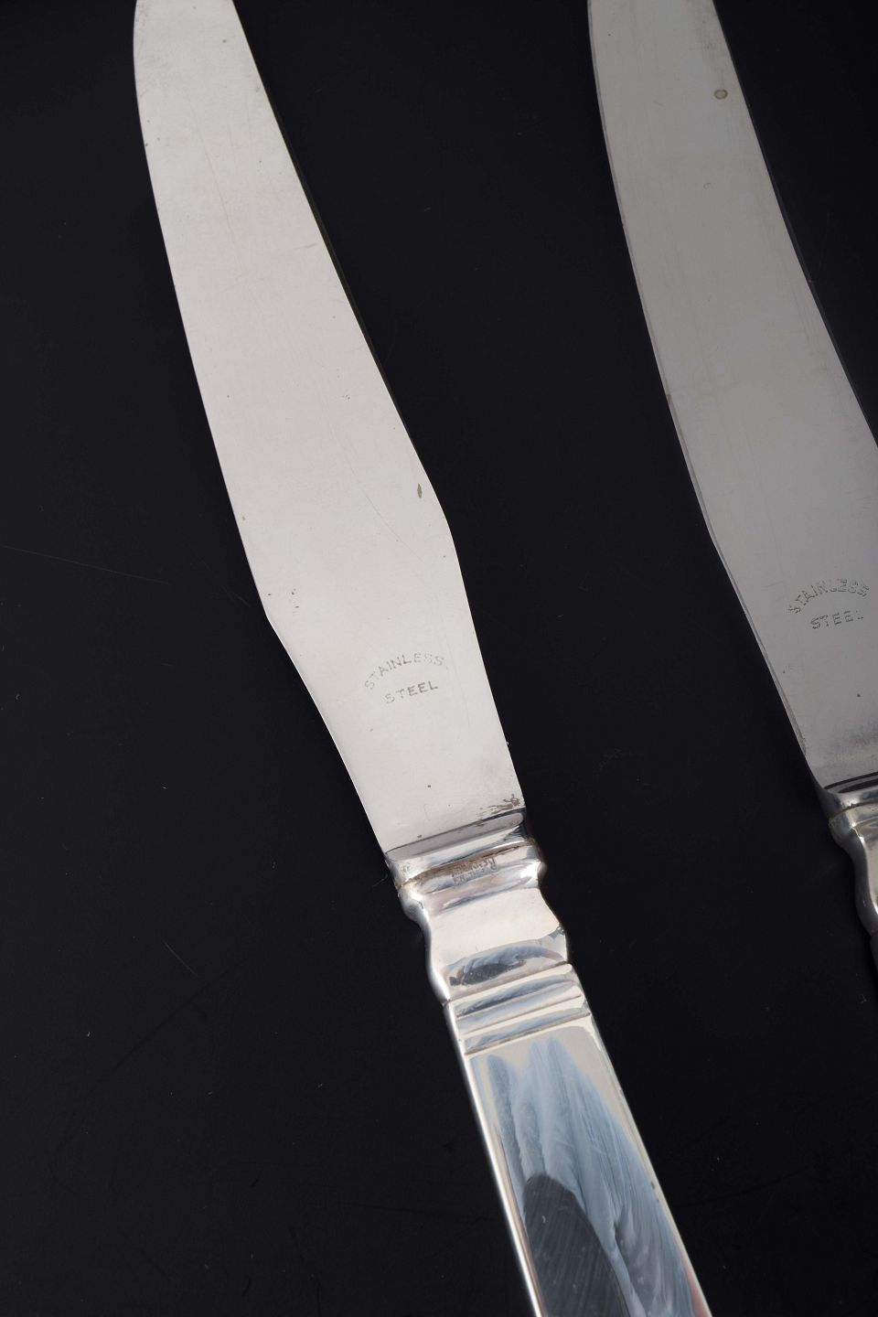Sterlingsølv og rustfrit stål.
