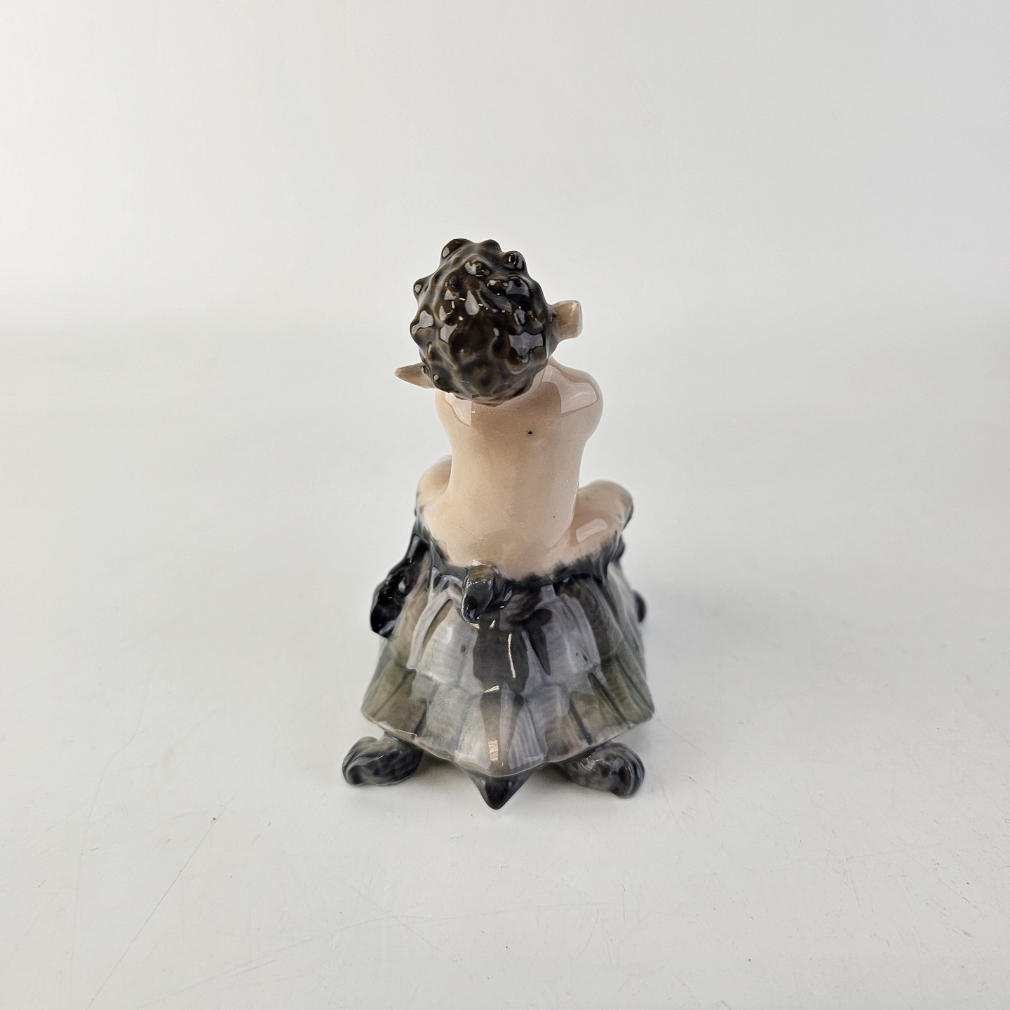 Kongelig figur i porcelæn med motiv af en faun som sidder på ryggen af en skildpadde