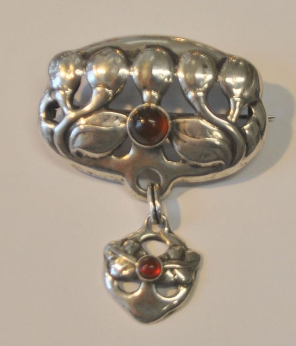 Jugend brooch in silver with amber, B. Hertz (1893 - 1937) Copenhagen, Denmark.