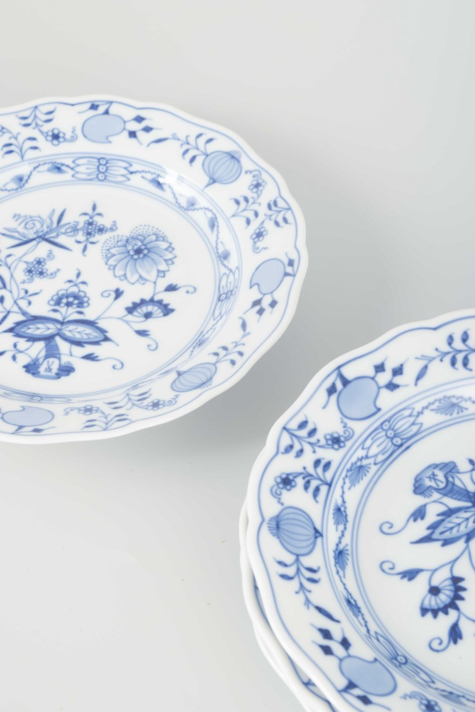 “Løgmønstret” er et af Meissens mest ikoniske mønstre, udviklet i midten af 1700-tallet og inspireret af asiatisk porcelæn. Dekorationen, der oprindeligt skulle gengive granatæbler og ferskner, blev senere opfattet som løg – deraf navnet. Serien er fortsat blandt Meissens mest populære og klassiske stel.