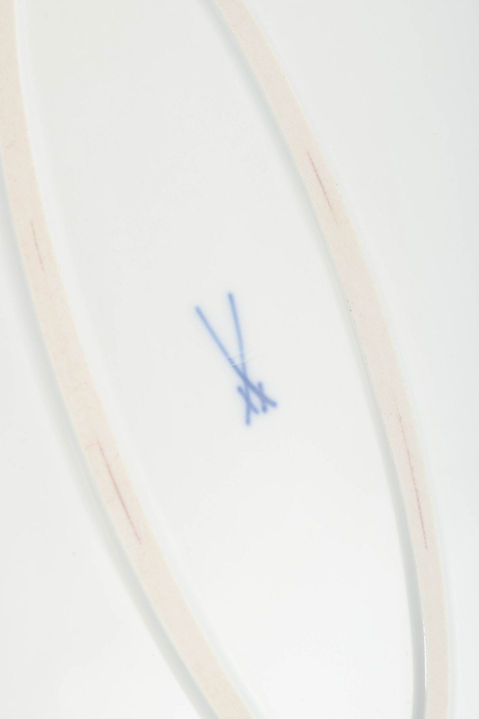 Meissen har siden begyndelsen af 1700-tallet været Europas førende porcelænsfabrik, kendt for sin håndmalede dekoration og tekniske perfektion. I 1930’erne blev de klassiske blomsterdekorer genfortolket i mere afdæmpede farver, som her i lilla, hvilket giver et elegant og tidstypisk udtryk.
