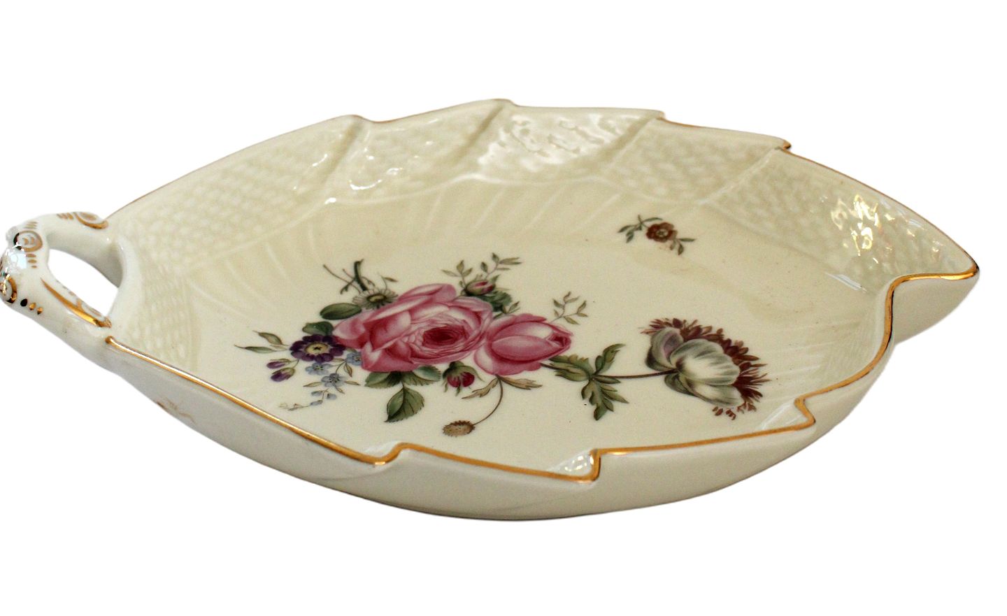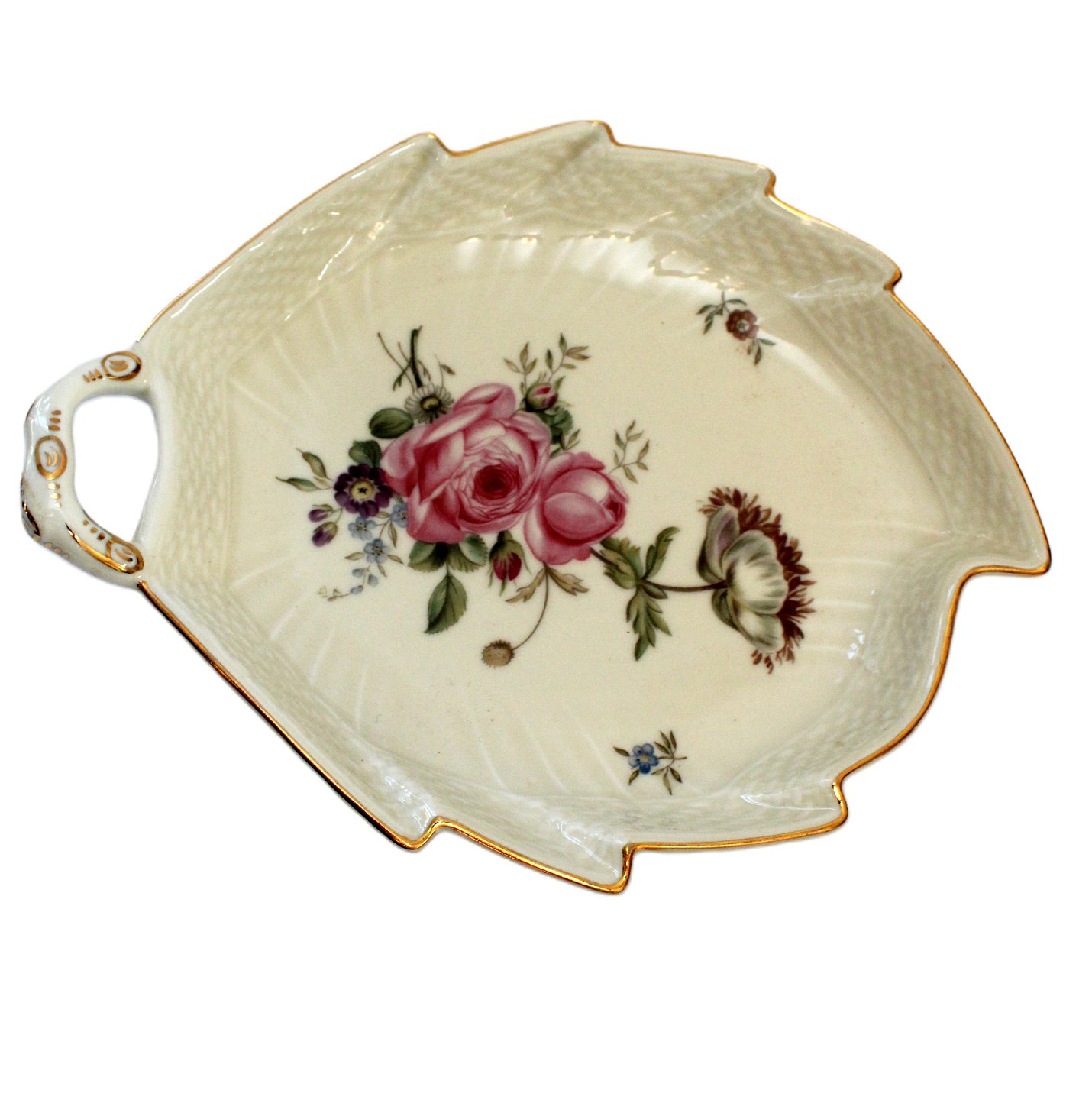 Royal Copenhagen, Frisenborg svejfet stel creme med forskellige blomstermotiver og guldkant. Nr. 910/1866. Længde 23 cm. Bredde 18 cm. I sortering. Pris: 125 kr. stk. Lager: 1