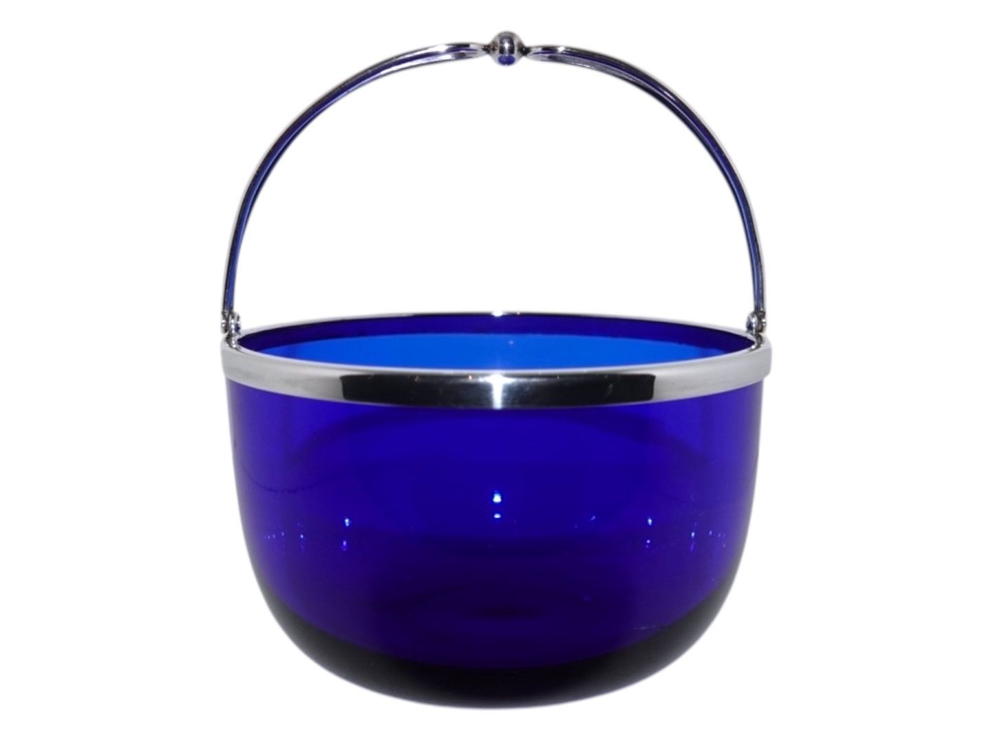 Kandisskål i blåt glas med Svend Toxværd ægte sølvkant og hank