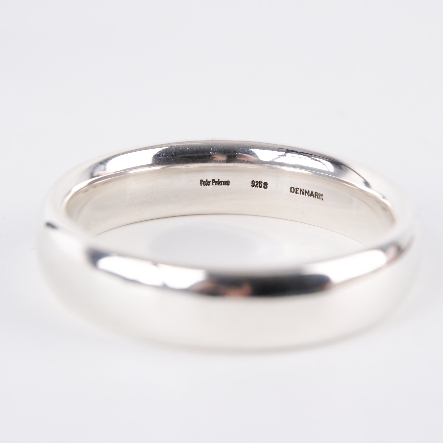 Fast armring i massiv 925 sterling sølv, stemplet for Peder Pedersen. Et enkelt og solidt smykke med klassisk formsprog og tydelig vægt, der giver en eksklusiv fornemmelse. Velegnet som tidløst hverdags- eller statementsmykke.