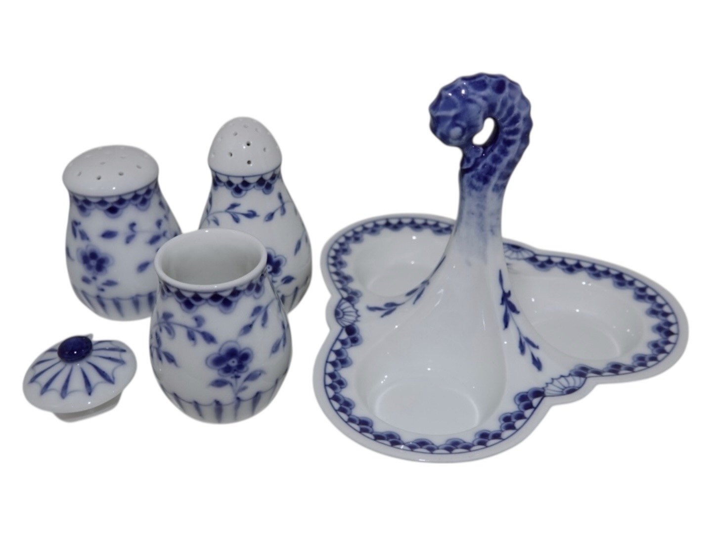 Bing & Grøndahl Sommerfugl Dickens, Plett de menage med sennepskrukke, salt- og peberbøsse med propper.