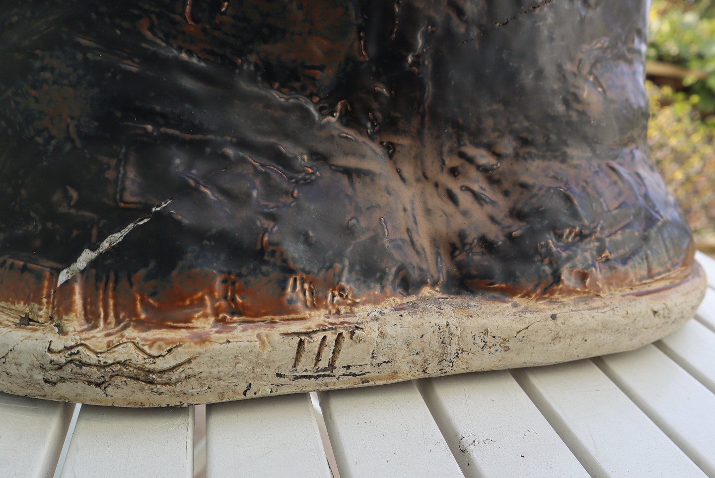 1 stk mulig prototype (No 3) i brun dilou glasur mærket med de tre bølgelinier 6 #III og synlige brændingsrevner/ sammenføjninger - flere billeder kan sendes - eller kom og se den i Mariager