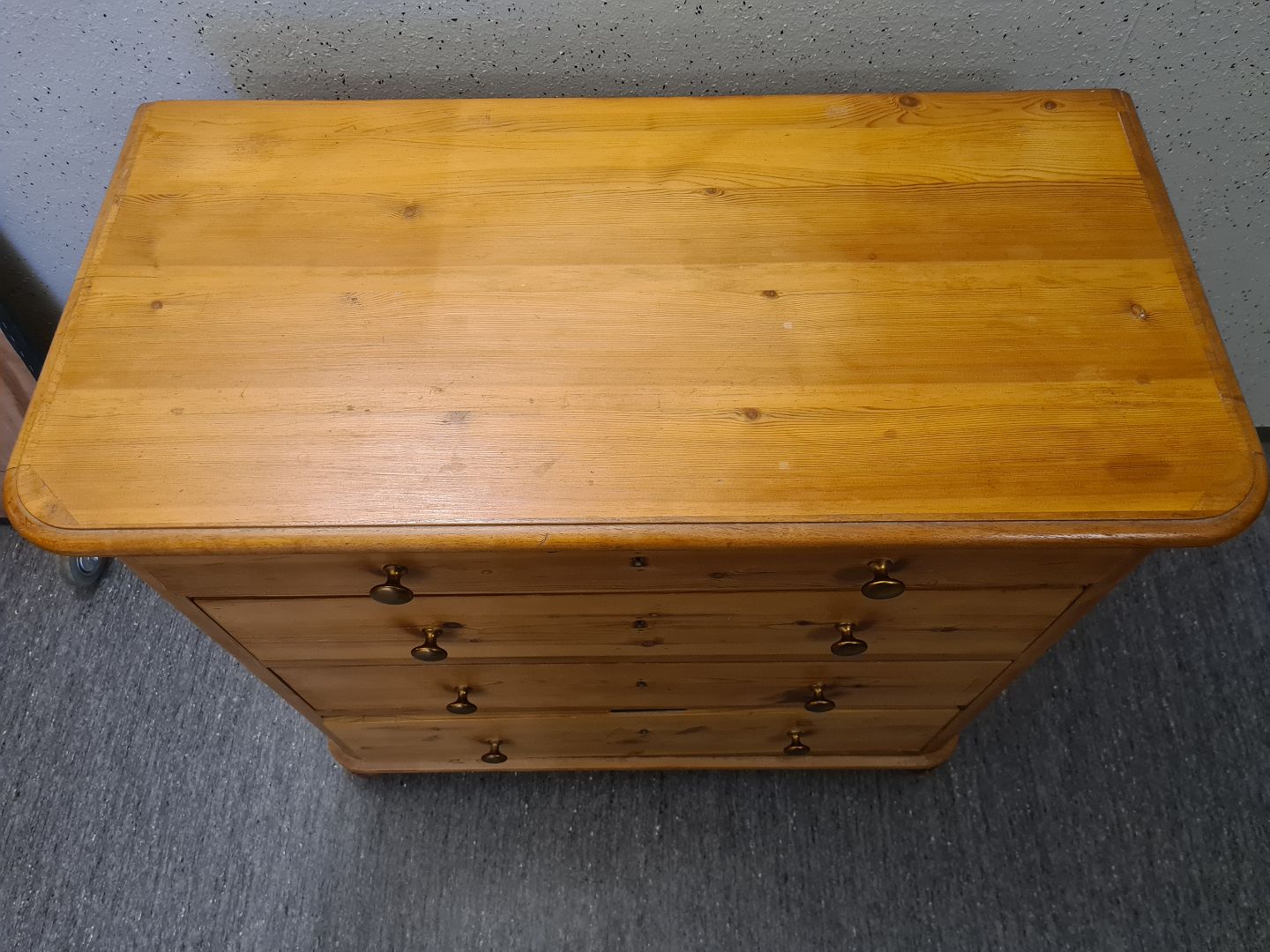 Kommode fra 1940'erne I massiv fyrretræ. Fremstår pæn, velholdt og udmærket funktionsdygtig. Dog med ganske få brugsspor på toppen (billede) og umiddelbart uden nøgle.