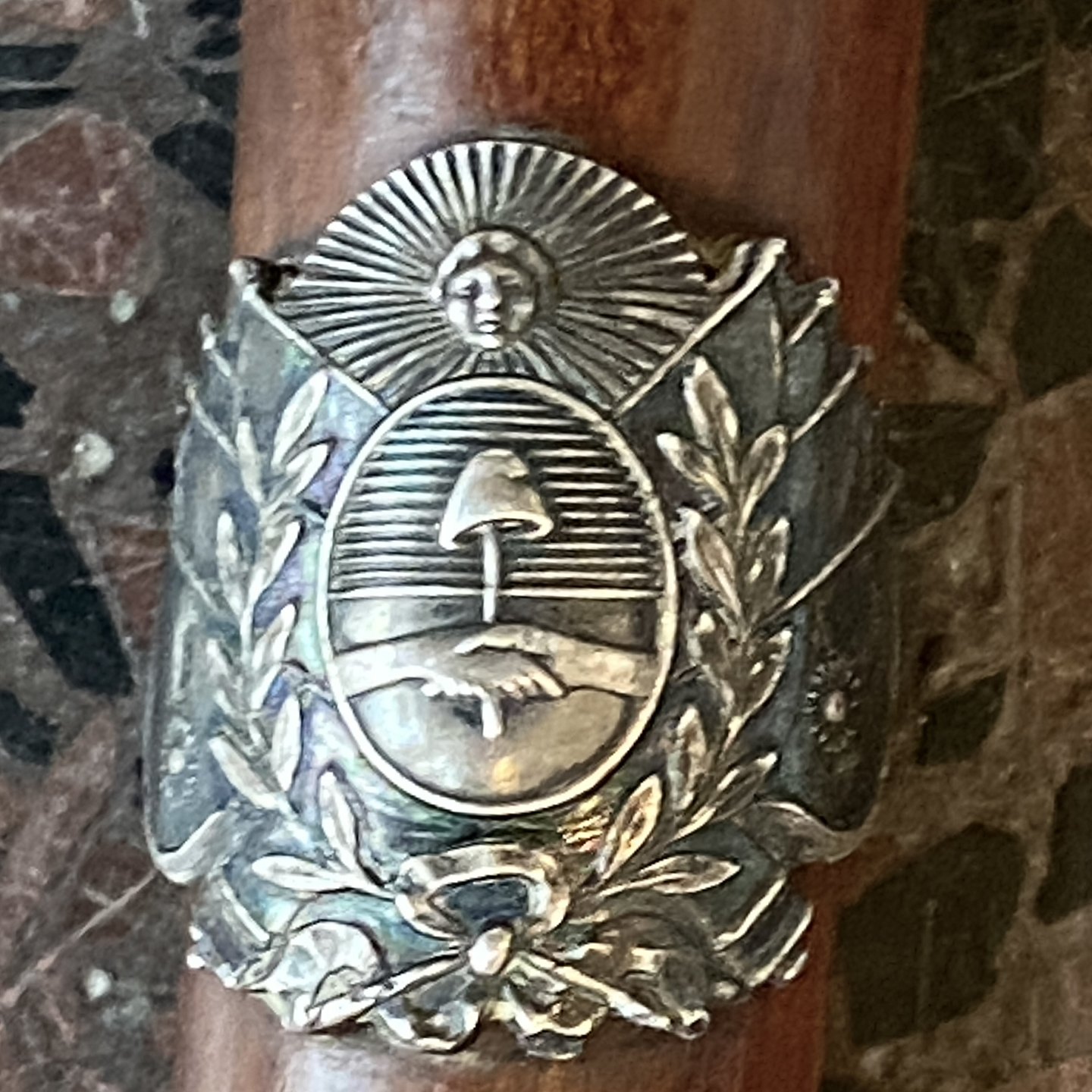 Stemplet 800s samt mærke fra Argentina.