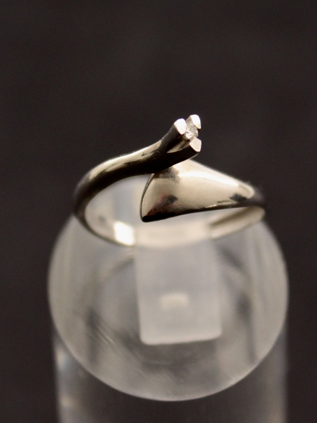 18 karat moderne hvidguld ring størrelse 53 med lille diamant stemplet 750 HU for guldsmed H. Ulriksen Fredericia emne nr. 624155