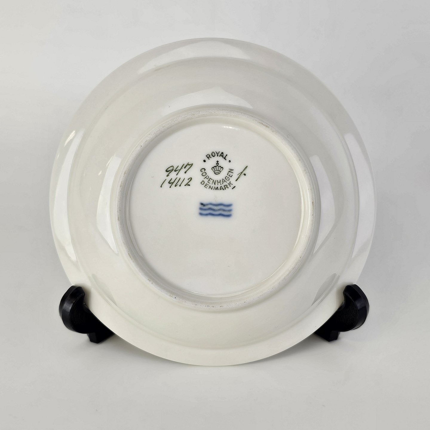 Cremefarvet porcelæn med motiv af gylden kløverblomst og bred graveret guldkant.