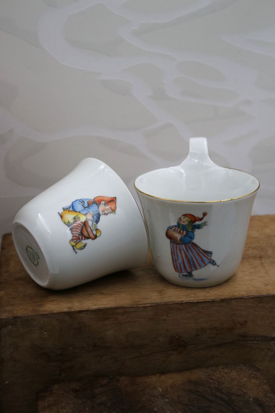 Bing & Grøndahl høj hanks kopper med julemotiver og guldkant.