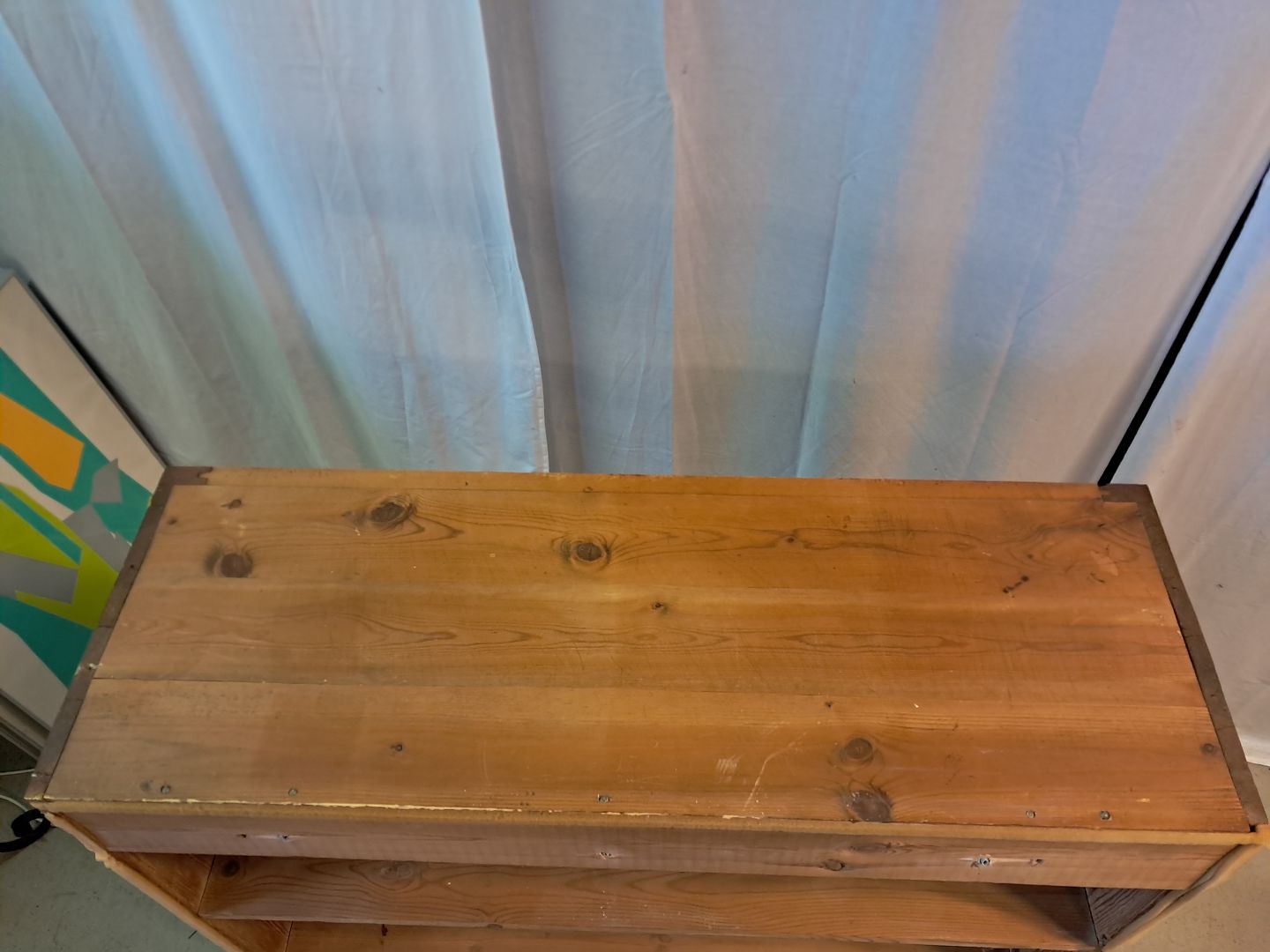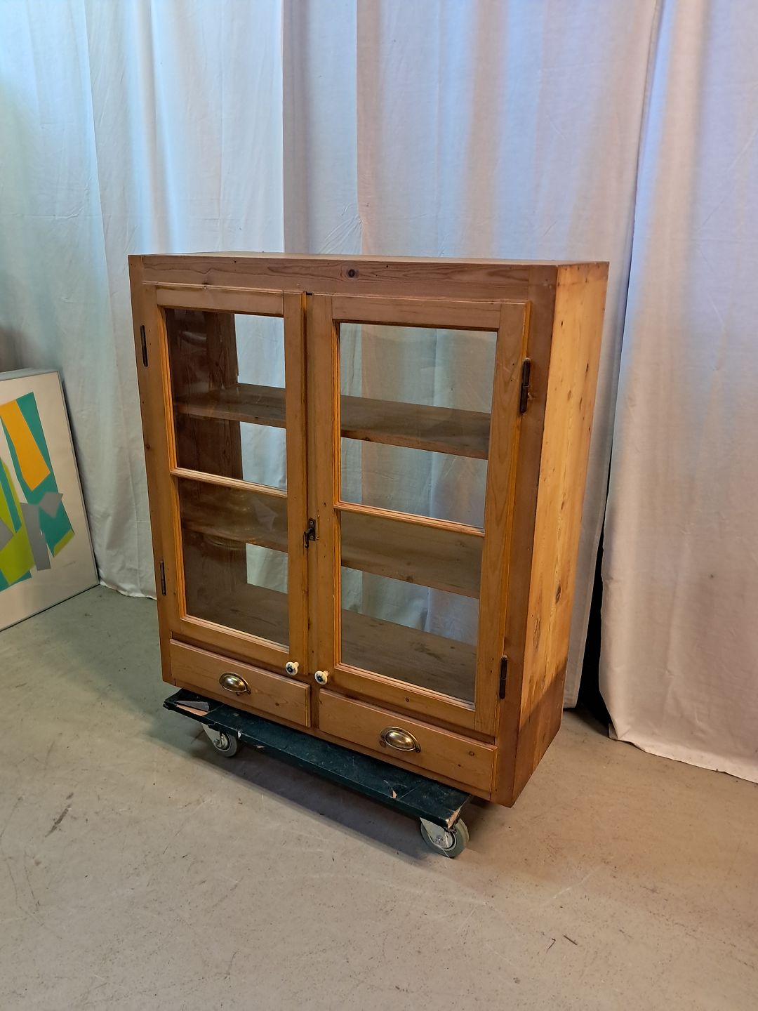 Gammelt køkkenskab i massivt fyrretræ, fra 1920erne.