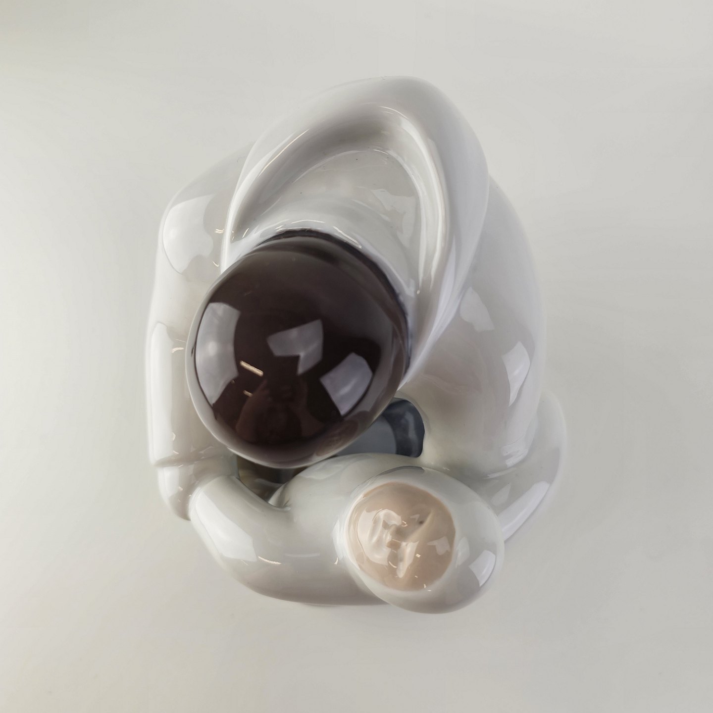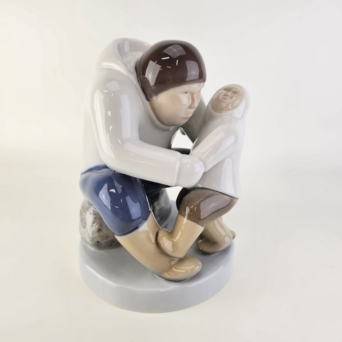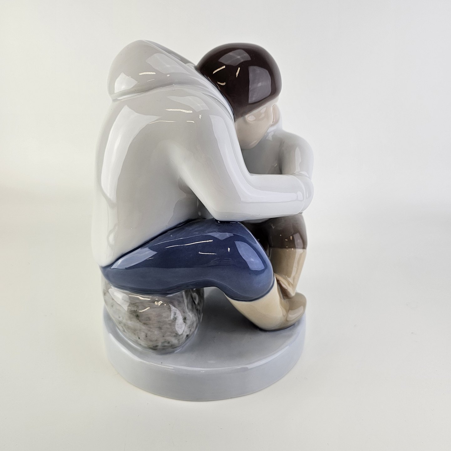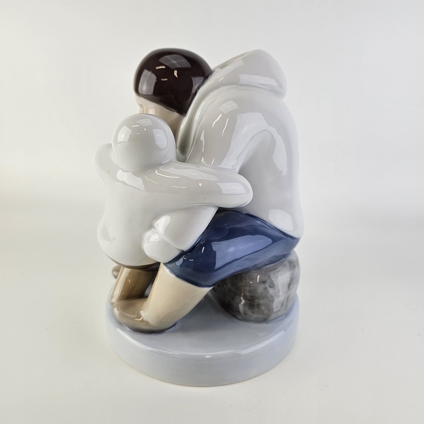 Figur i porcelæn med motiv af en grønlænder med et barn