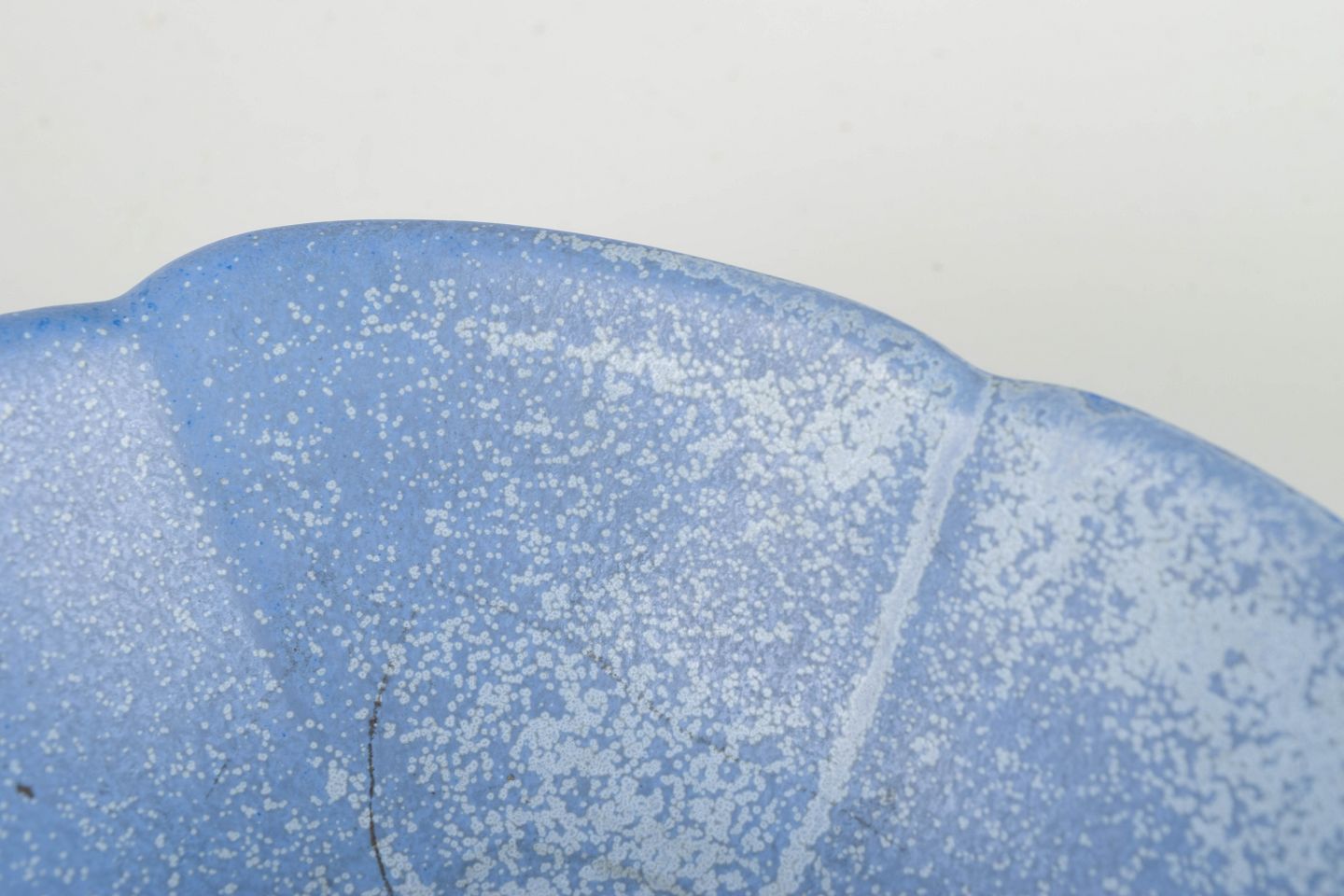Elegant stentøjsskål med blød, organisk form og matblå glasur med fint spættet overflade — et karakteristisk eksempel på Nylunds sans for proportioner og subtile farvetoner. Skålen udstråler den rolige modernisme, som prægede Rörstrand i midten af det 20. århundrede.