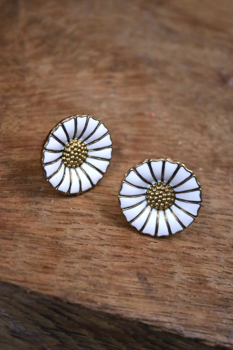 Et par gamle Georg Jensen Marguerit / Daisy ørenringe med øreskik i sterling sølv og hvid emalje. (825 S) Dia.:1,7cm.