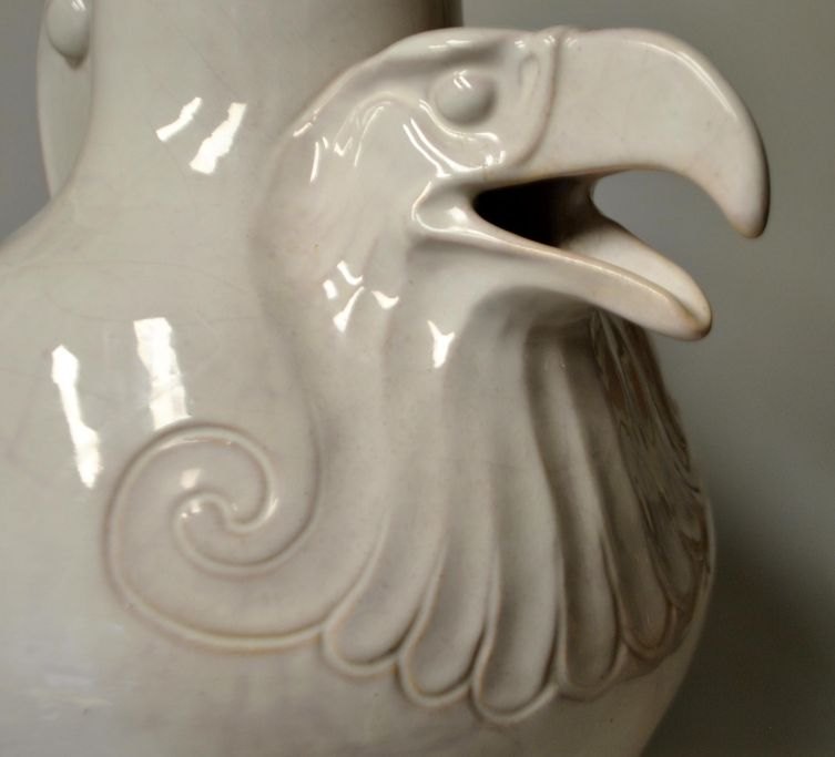 Hansen Reistrup, Karl (1863 - 1929) Danmark: Ørnekande af lertøj. Fremstillet hos H.A. Kähler, Næstved. Hvidglaseret. Med specielt designet håndtag. Signeret: KHR og HAK. H.: 32,5 cm. B.: 35 cm.