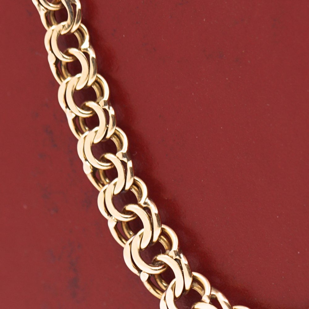 Bismarckhalskæde i forløb, 14 kt. guld. Monteret med kasselås samt to sikkerhedslåse.