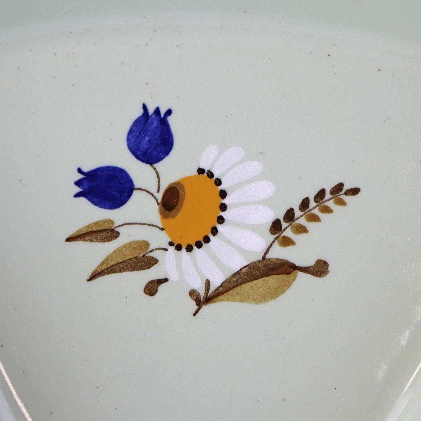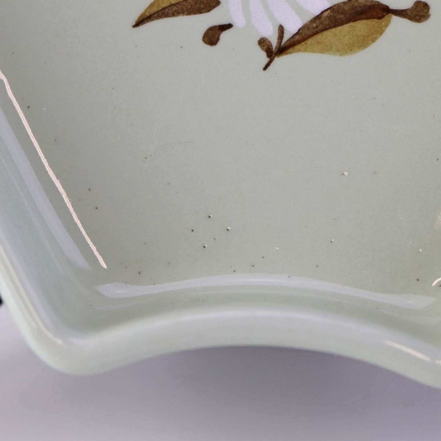 Fremstår med mindre sorte nister i glasuren samt ujærnhed ved topkanten.