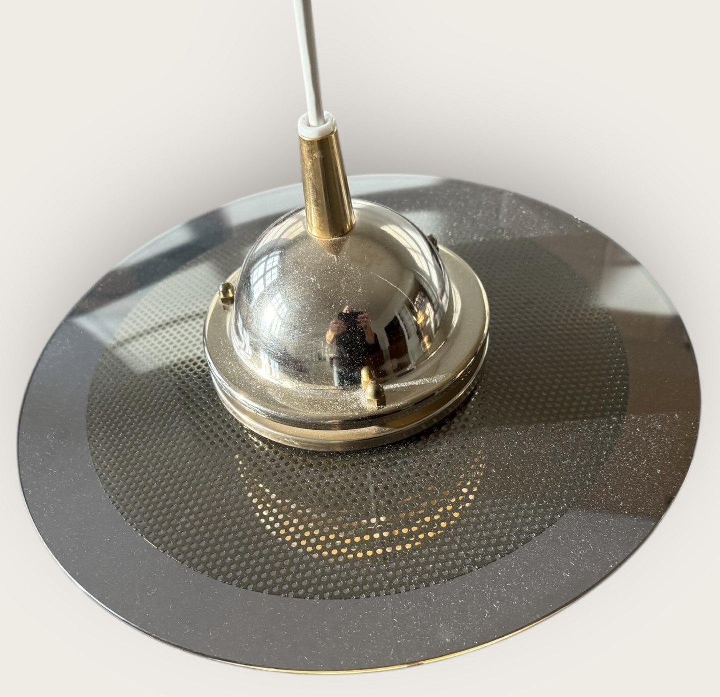 Jan-Eskild Eskildsson, Belid, Sverige, Reflektor Loftlampe i røgfarvet glas og messing, Diameter 29cm *pæn stand*