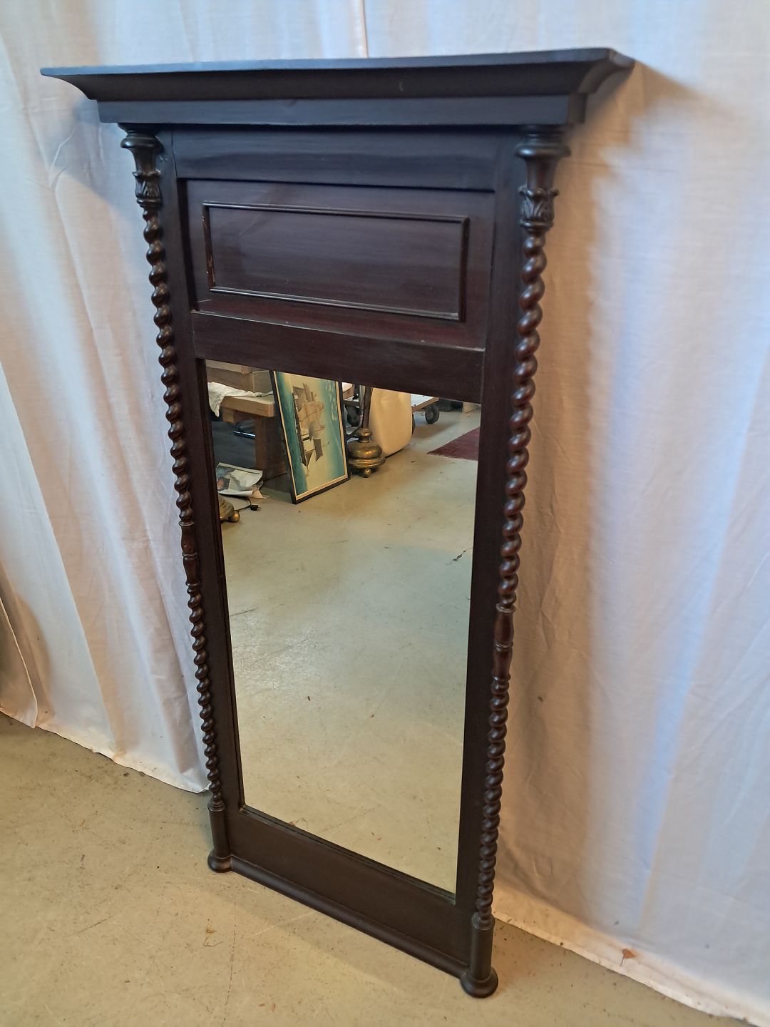 Spejl i fineret mahogni, fra 1900erne.