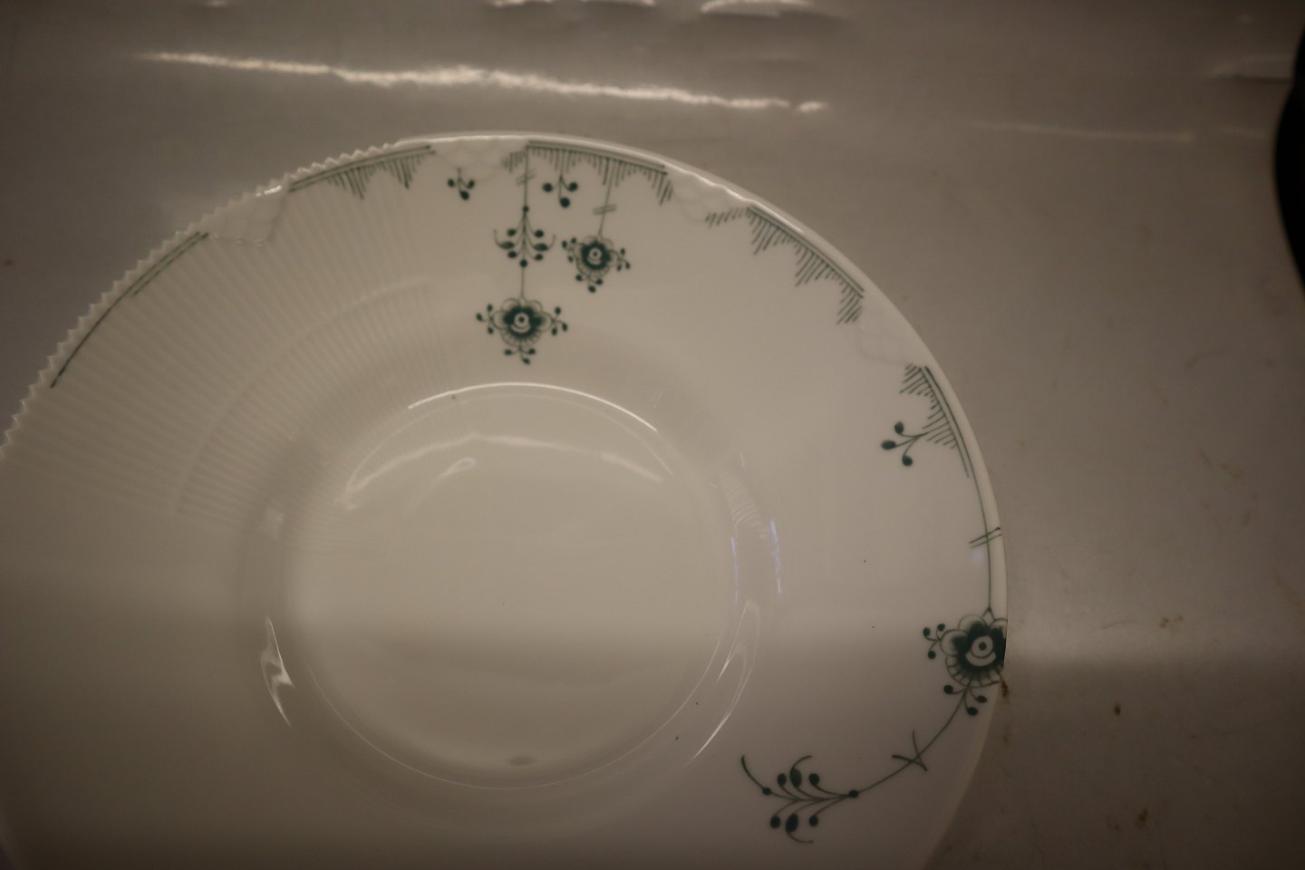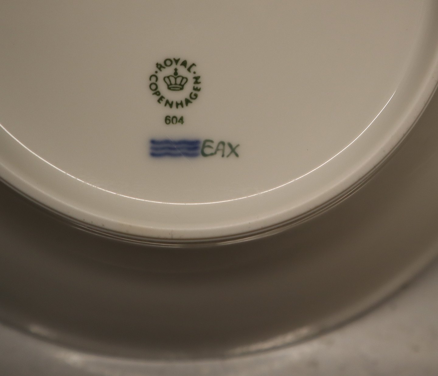 604 Stor dyb tallerken 6 x 24.5 cm Grøn Elements Kongelig Dansk Porcelæn Grøn Elements Musselmalet