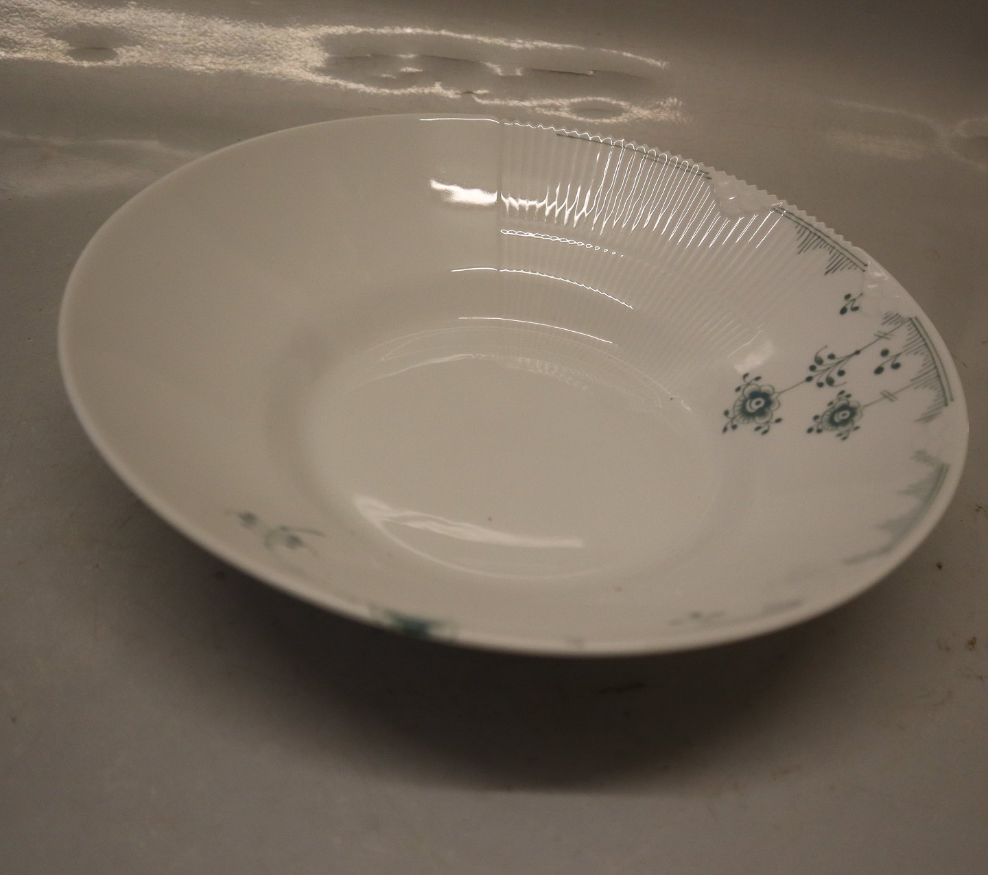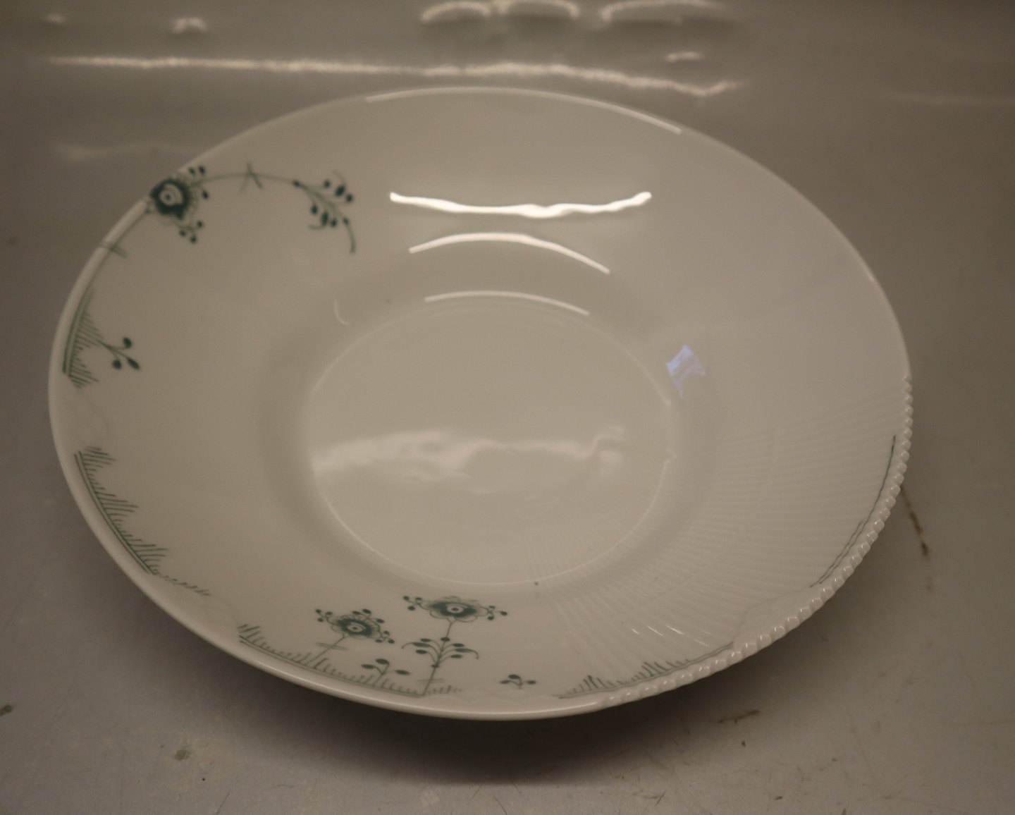 604 Stor dyb tallerken 6 x 24.5 cm Grøn Elements Royal Copenhagen Musselmalet. Muselmalet Grønt. I fin og hel stand. Passer godt sammen med andre blåmalede spise- og kaffestel. Design Louise Campbell