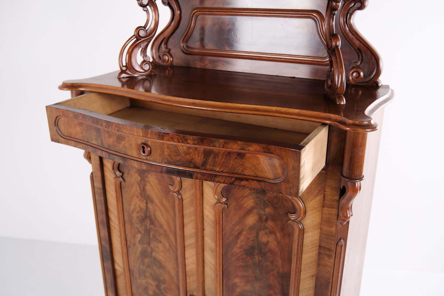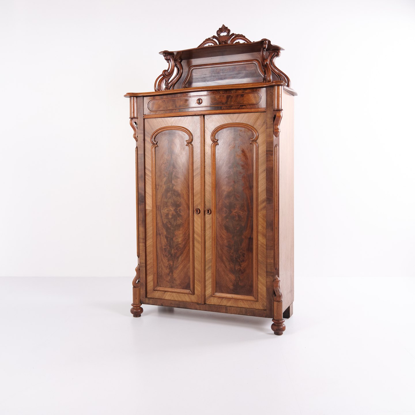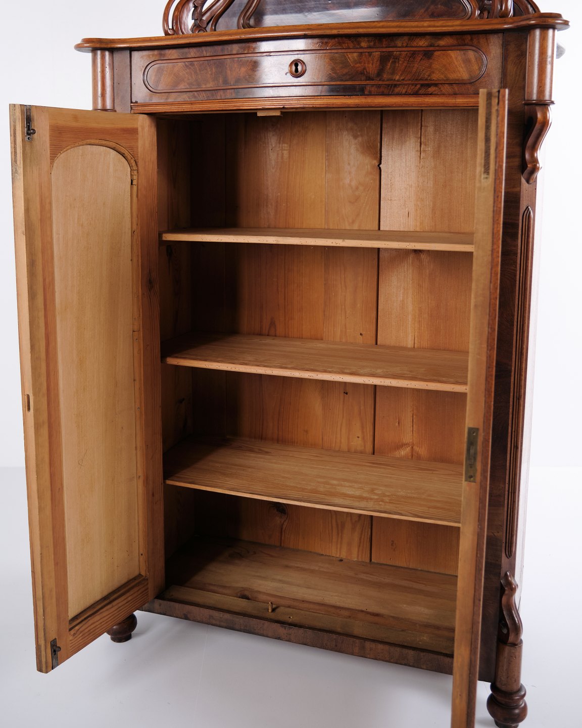 Skab - Mahogni - Antik - Udskæringer - Låger & Hylder - 1880'erne