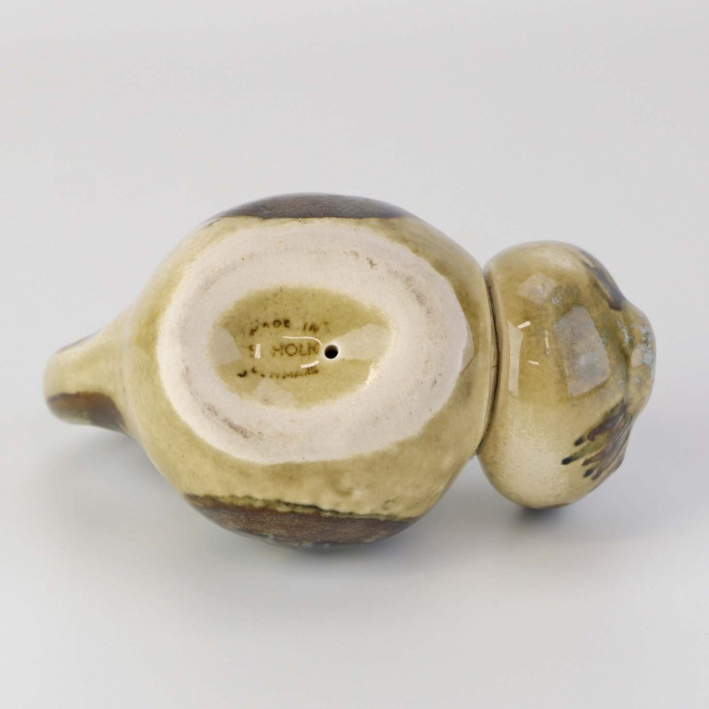 Fremstår med mindre brændingsrevne på undersiden, hvor hovede og krop mødes.
