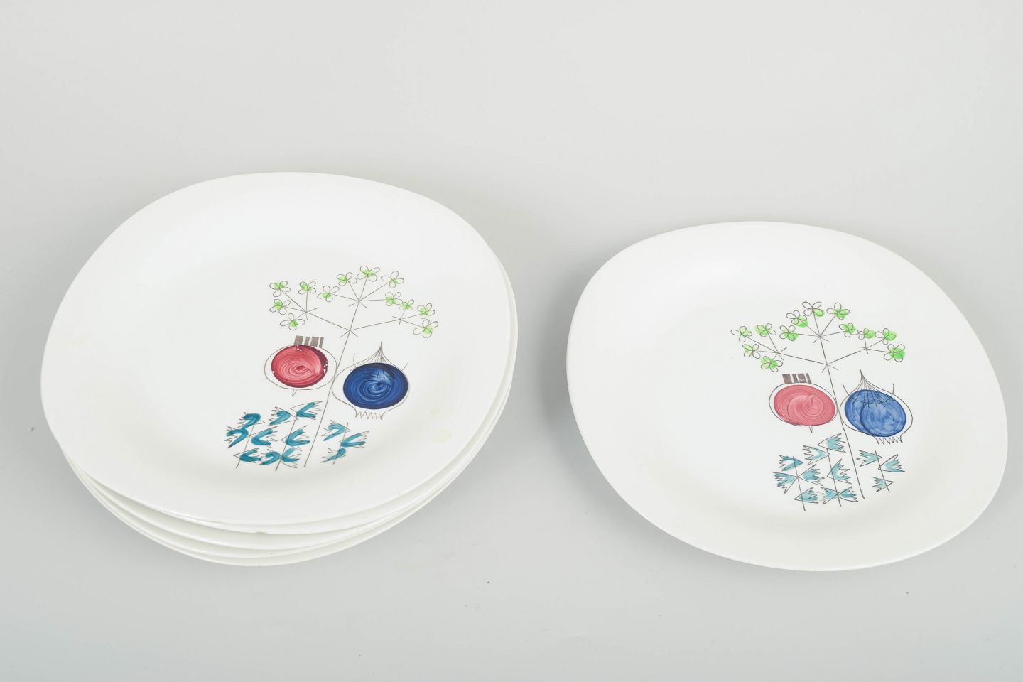 Seks tallerkener, “Pomona” serien, midt 1900-tallet.