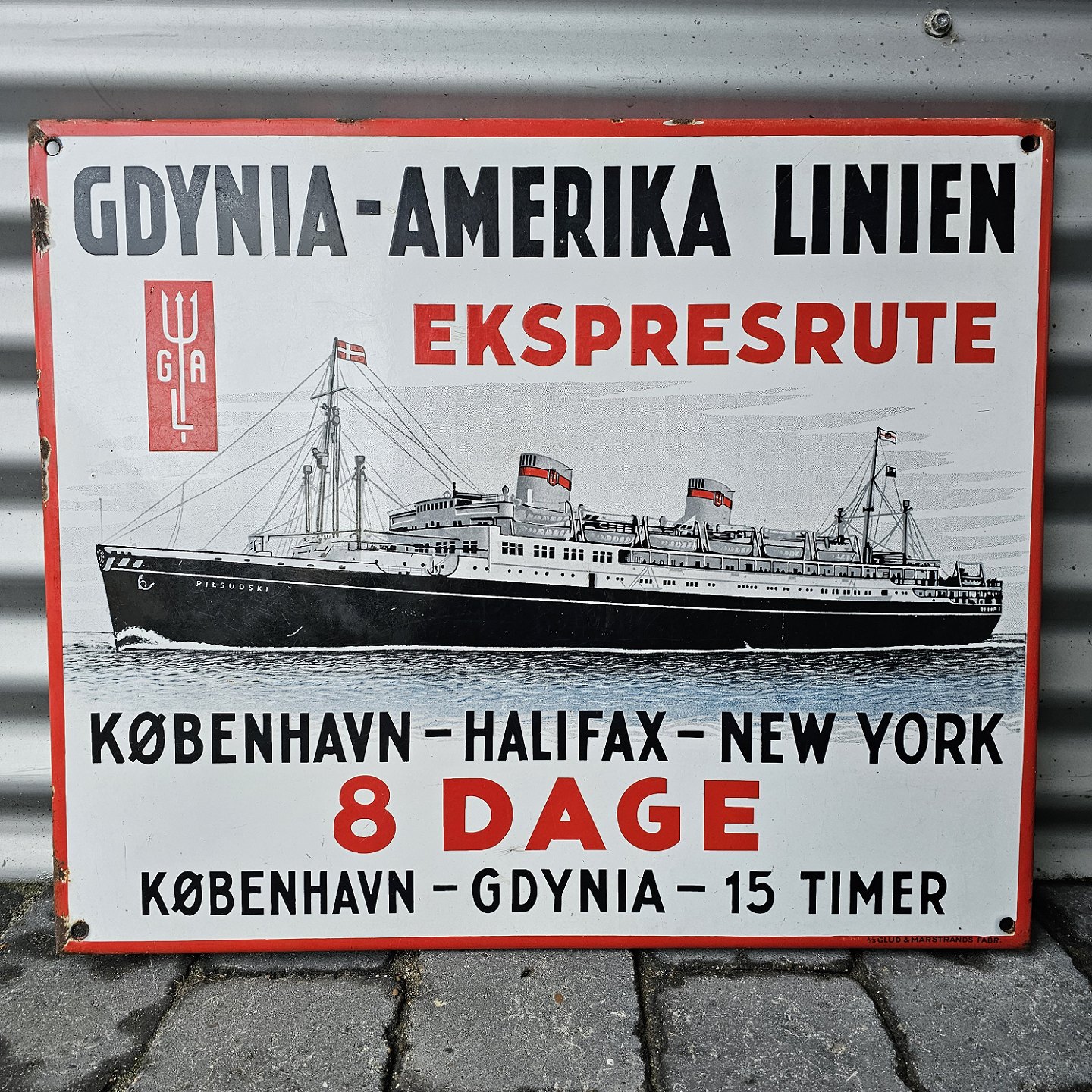 Skilt i emalje med information om Skibsruten Gdynia-Amerika Linien