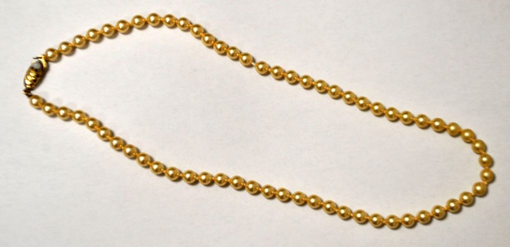 Pearl necklace with gold clasp, 20th century. L. 44 cm.