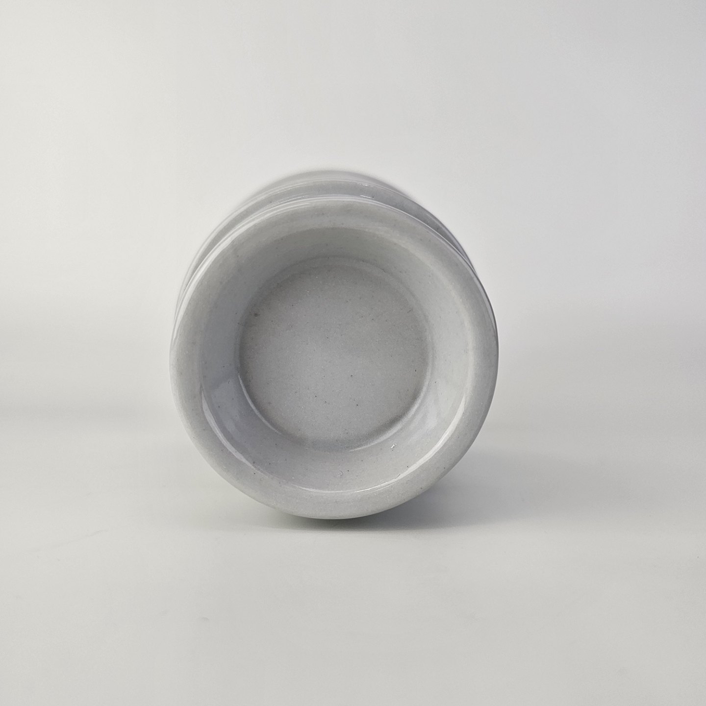 Krukke i glaseret stentøj med dekoration af tre blå striber
