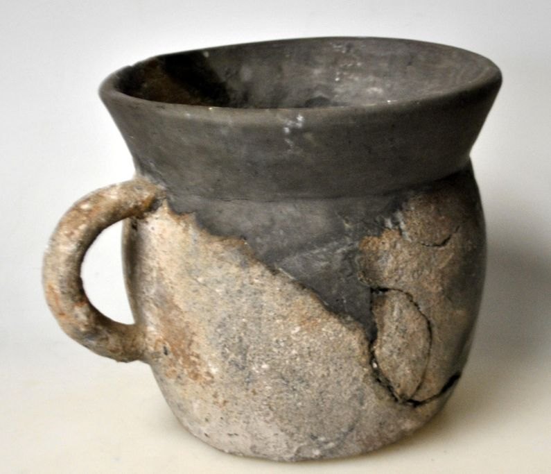 Dansk jordfund. Lerkar. Keltisk jernalder, Danmark. Med reparationer. H.: 10,5 cm.