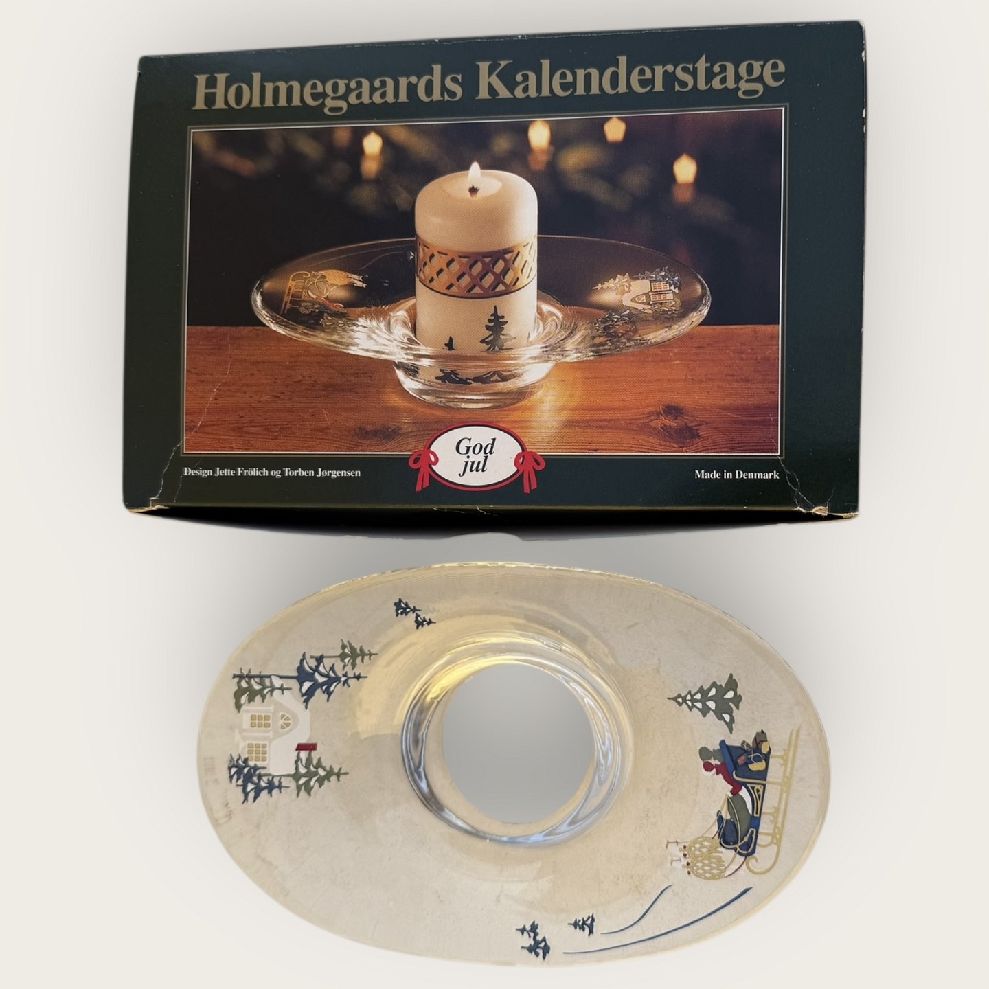 Holmegaards kalenderstage, Golden Christmas, kalenderlysestage fra 1998, 18x11cm, *Fin stand og i original æske*