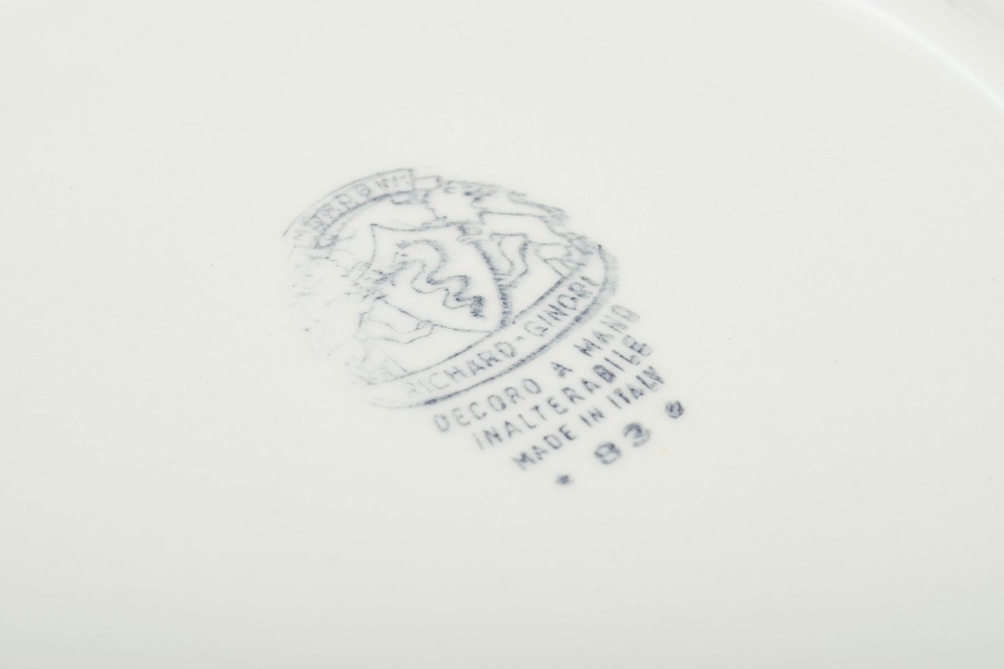 Richard Ginori, grundlagt i 1735 nær Firenze, er et af Italiens mest anerkendte porcelænsfabrikker, kendt for håndværk af høj kvalitet og kunstnerisk udsmykning. Mondovì-dekorationerne repræsenterer en periode, hvor farverig og detaljeret håndmaling blev kombineret med klassisk italiensk porcelænstradition, hvilket gør stykkerne attraktive for samlere.