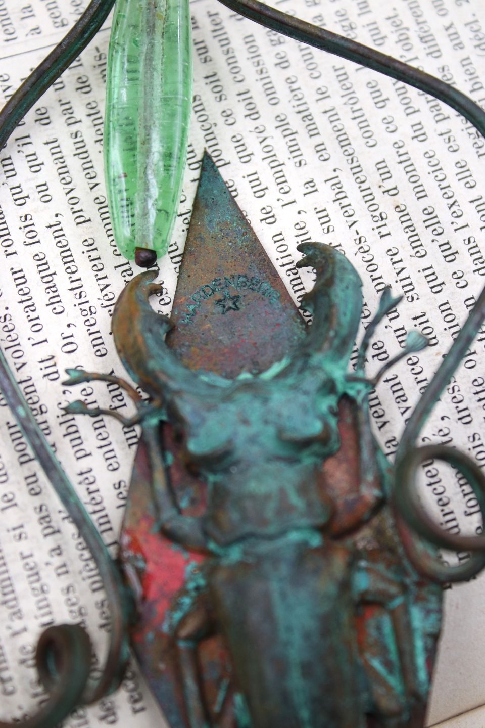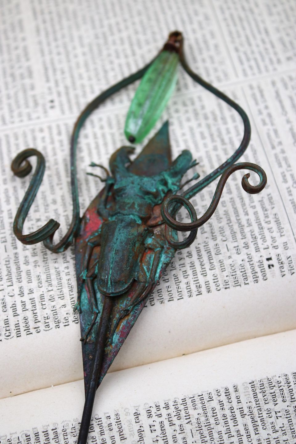 Unique flower stick in copper with glass bead and insect made by jewelry artist Torben Hardenberg...