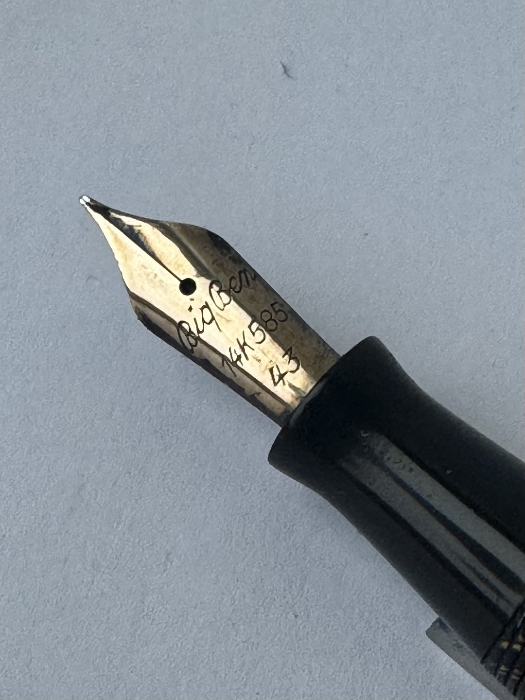 Mindre 12-kantet Big Ben fyldepen med piston filler. Blæk-påfyldnings systemet skal repareres så pennen igen kan optage blæk og skrive igen. Ellers i god stand uden skader. Big Ben indgraveret på den ene side af hætten. På den anden side står der 1920 1.12 1940. Længde: 11,7 cm