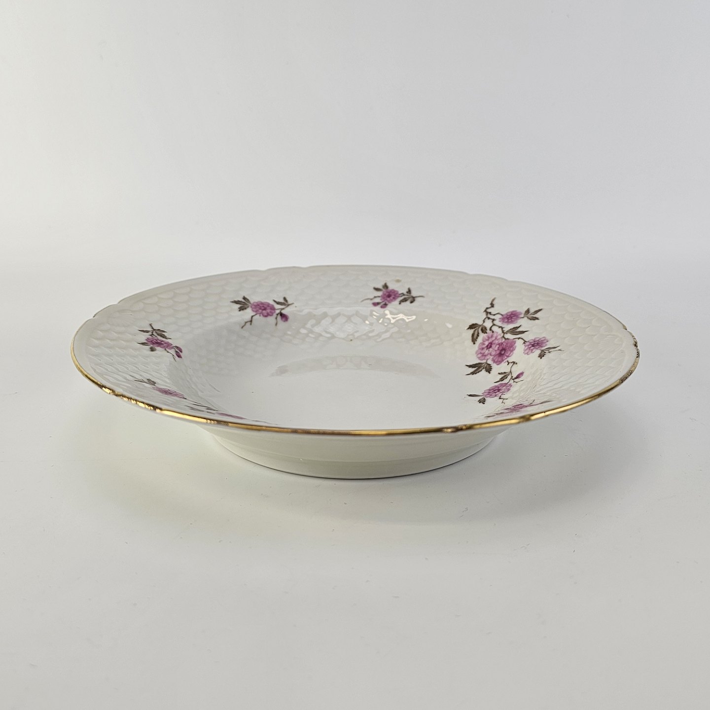 Volmer er porcelæn i skelform med guldkant og motiv af lyserøde blomster