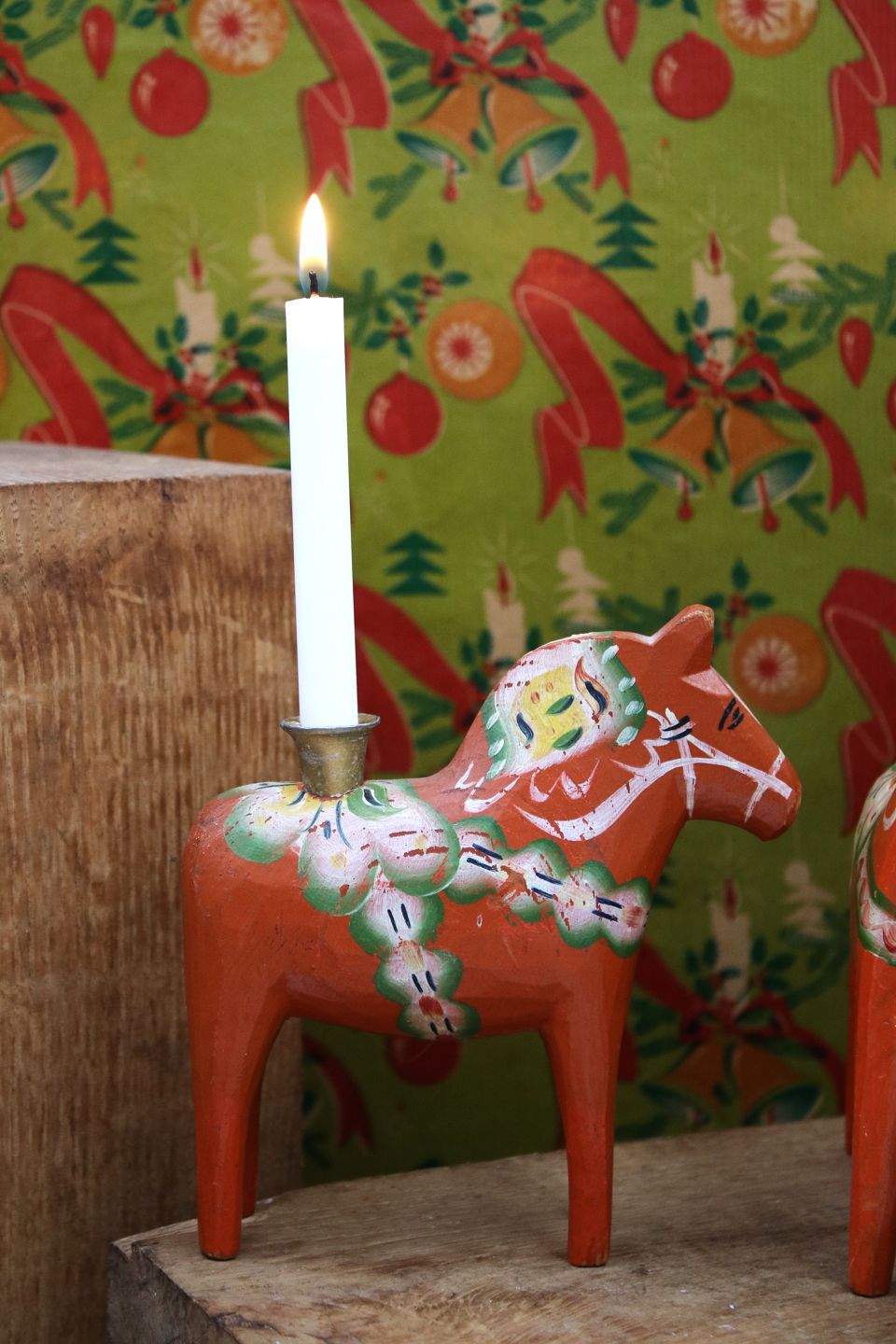 Gammel svensk Dalarhest julelysestage
