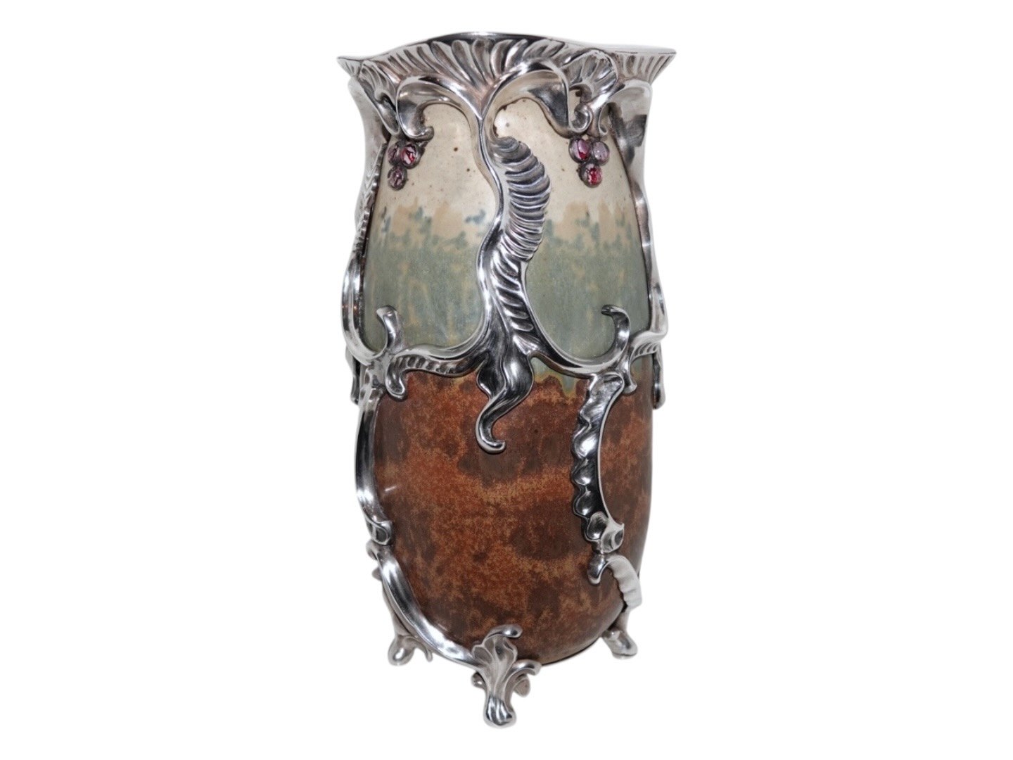 Stor Patrick Nordstrøm vase med ekstravagant sølvmontering