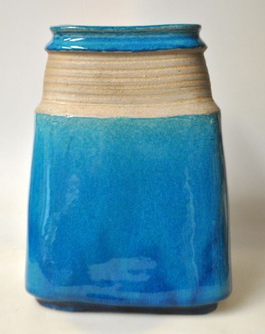 Kähler, Nils Joakim (1906 - 1979): Stort vase. Udført for H. A. Kähler, Næsteved. Turkis glasur. Med kantdekoration. Signeret. H: 23 cm. Dia.: 17 cm.