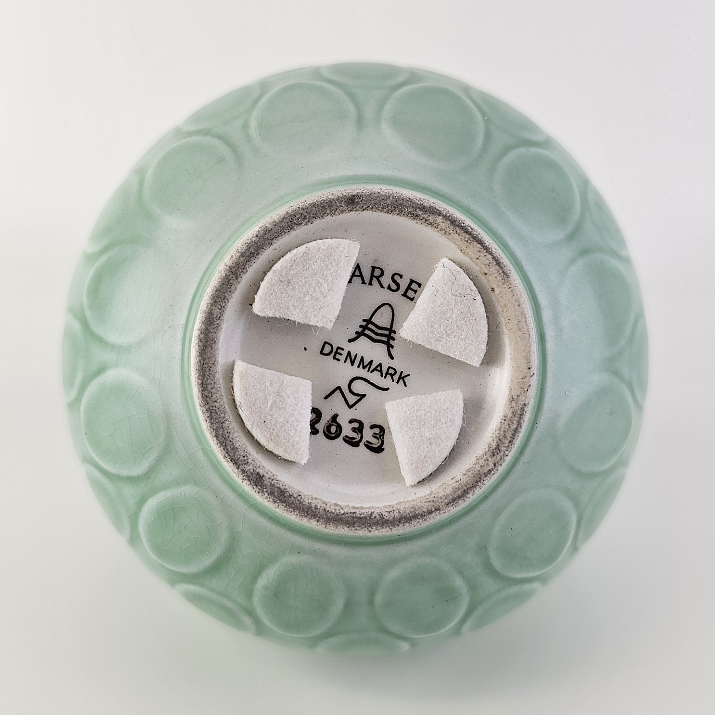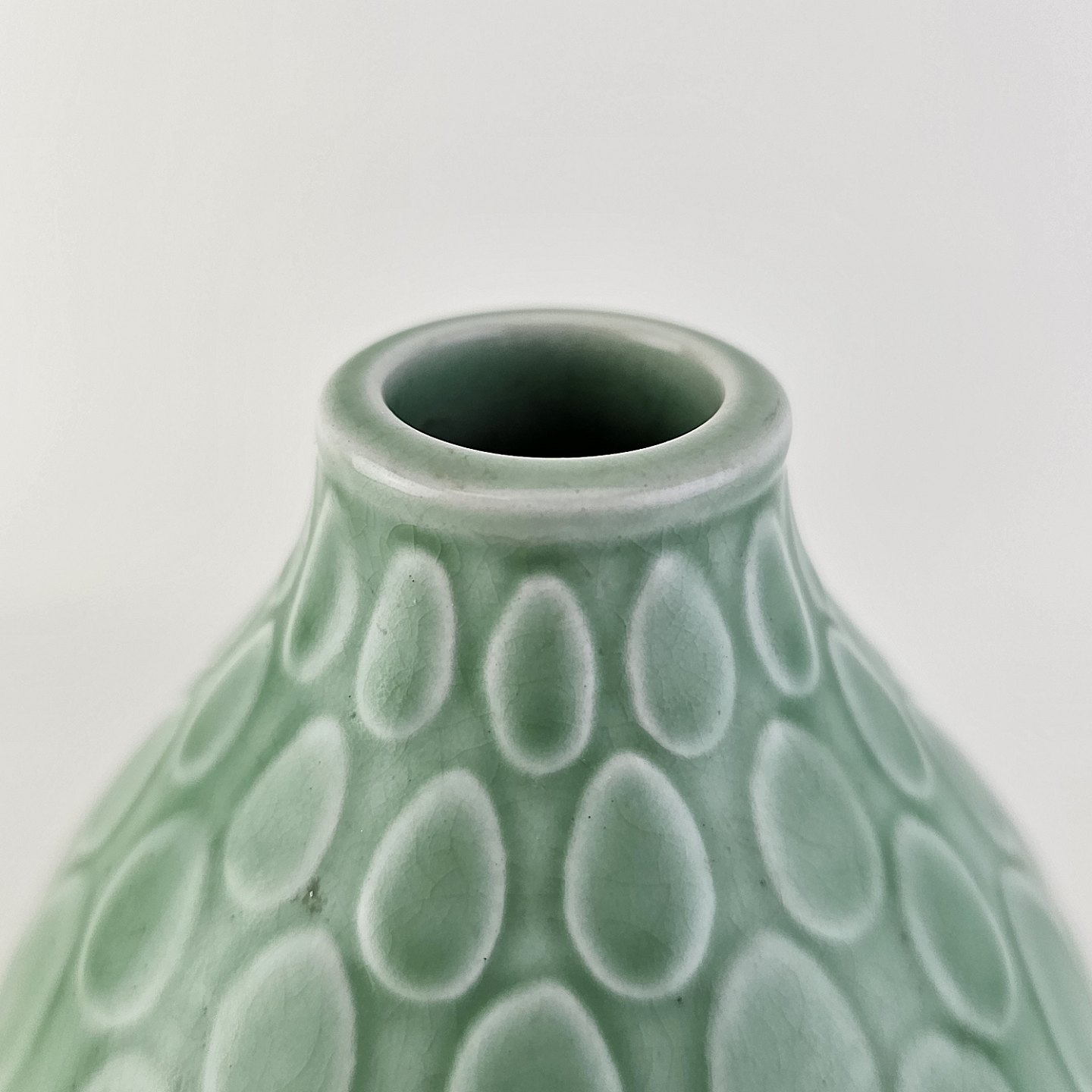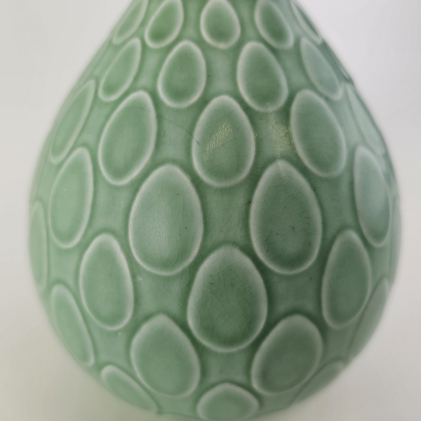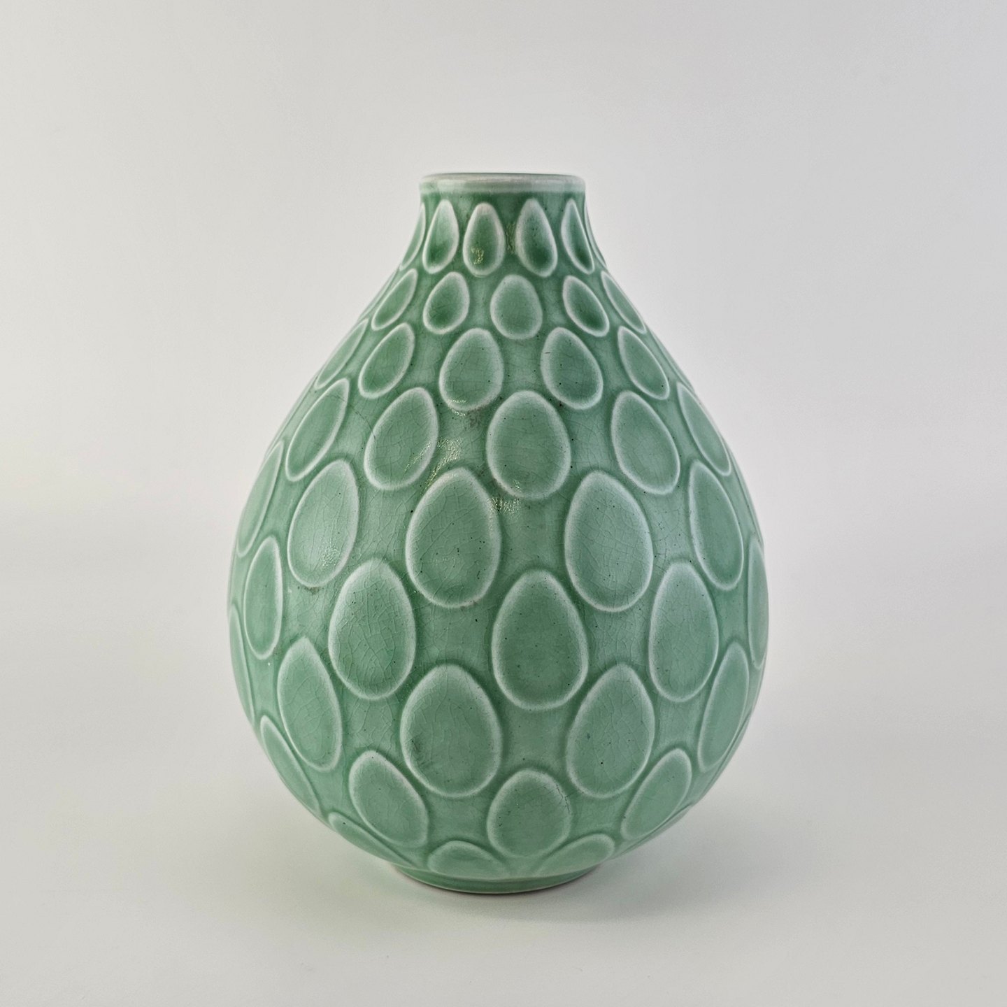 Vase i mintgrøn fajance med dråbemønster
