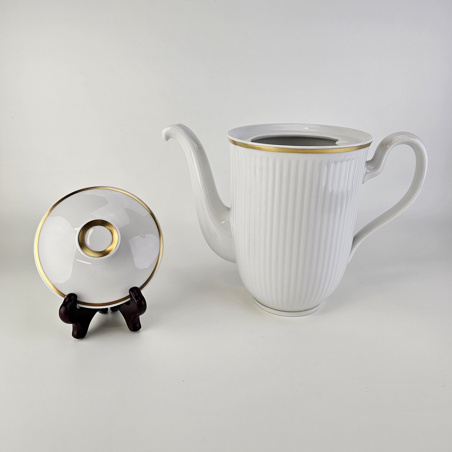Tunna er riflet hvidt porcelæn dekoreret med guldkant