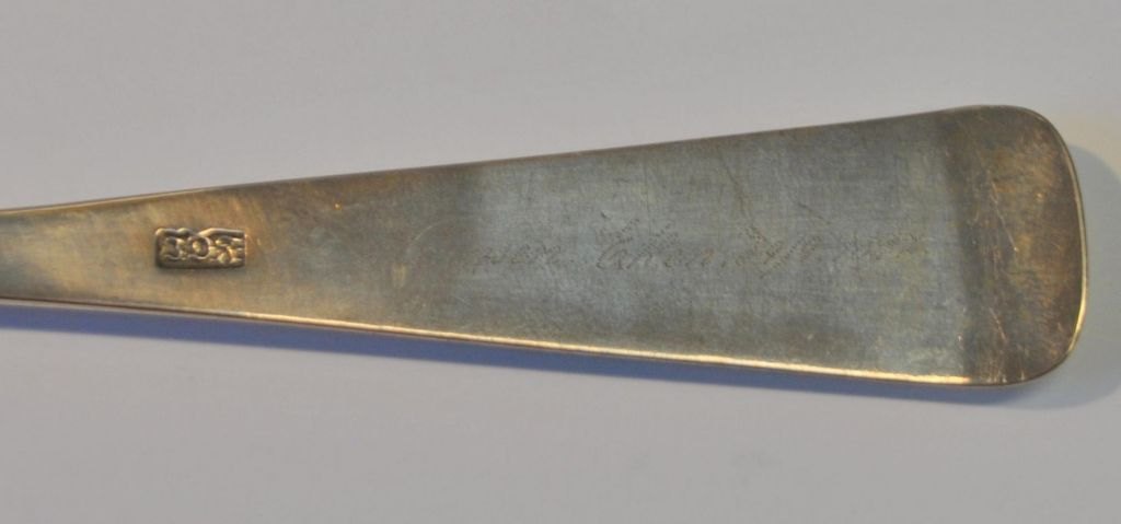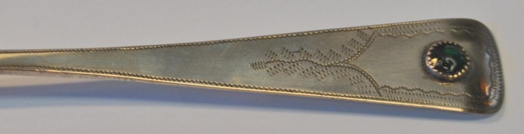 Peter Johannesen Petersen (1805 - 1873) Aabenraa, Denmark: Silver spoon with green glass.