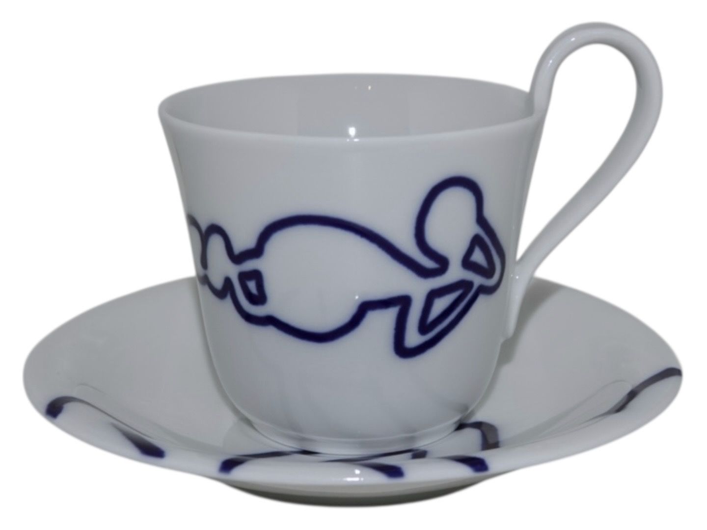 Royal Copenhagen Musica, højhankskop med tilhørende underkop. Dekoration D.