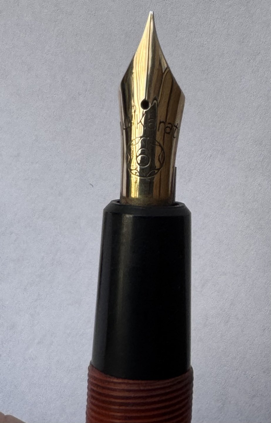 Koral rød Montblanc nr. 216 fyldepen. Push button filler. Fremstillet I Tyskland i 1950’erne. Fremstår I god stand uden skader eller reparationer. Alle dele originale Montblanc fra produktionsperioden med bl.a flot nr. 6 spids i 14 karat guld. Indgraveret STENLILLE 114 på siden af pennen. L.13,8 cm