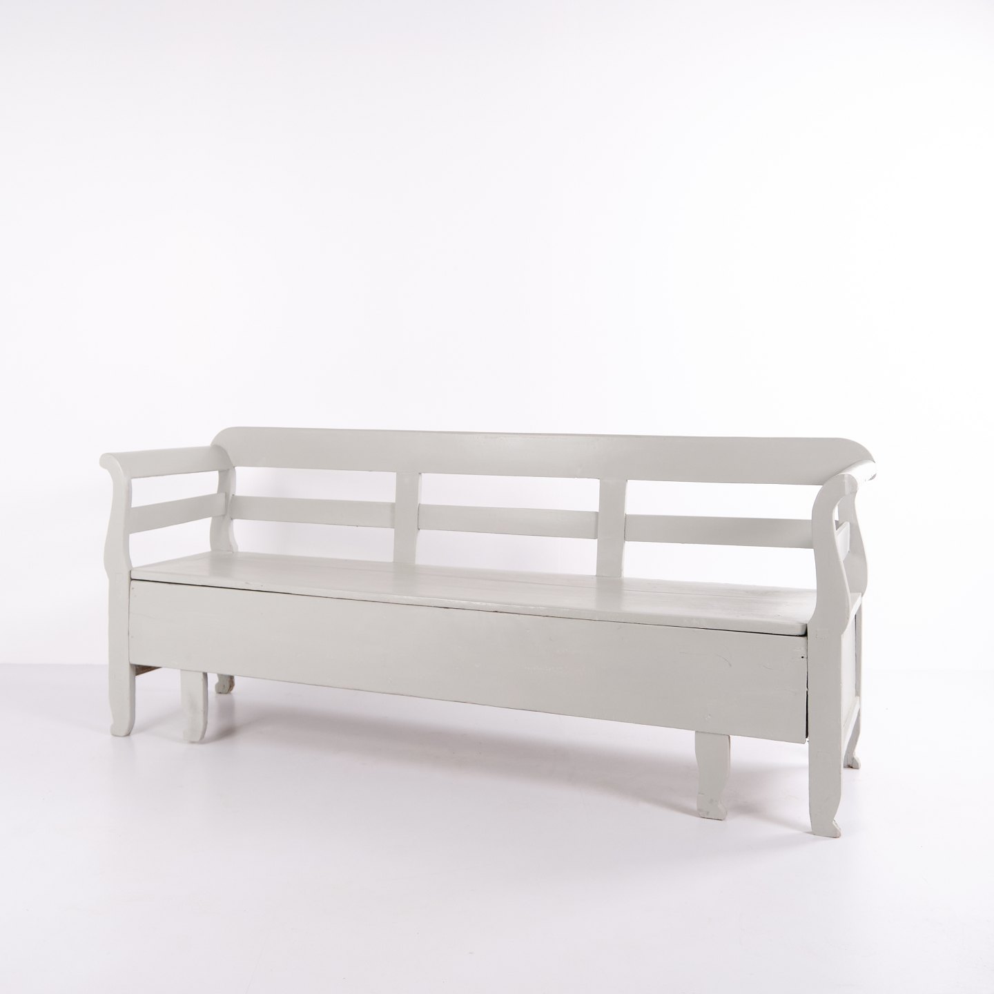 Antik Slagbænk - Gråmalet - Fyrretræ - Opbevaring - År 1860erne